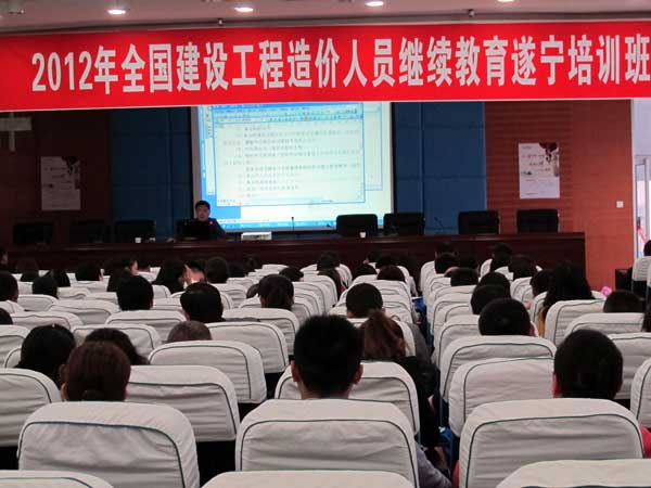 5月22日,遂宁2012年度全国建设工程造价工程师(员)继续教育培训在党校南四楼会议室举行,特别邀请省造价管理总站高级工程师王强就新出台的安全文明施工费计价管理办法进行宣传贯彻,并对安全费、文明费的组成,不同区域费率变化情况,施工措施现场评定,费率的测定,结算管理以及违规处理等内容作了详细的讲解和答疑,全市480多名造价从业人员参加了培训。