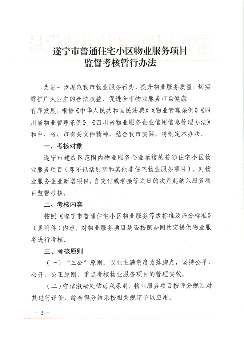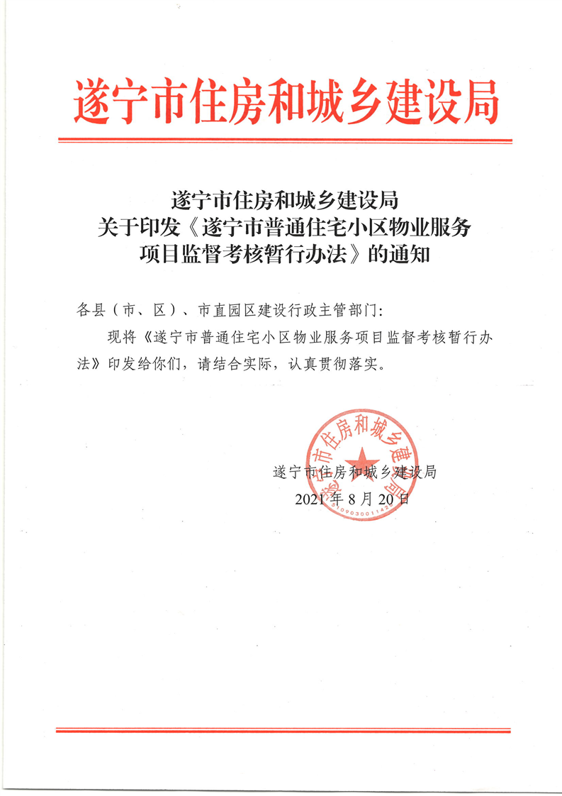 关于印发《遂宁市普通住宅小区物业服务项目监督考核暂行办法》的通知