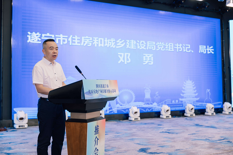 为了广泛宣传展示遂宁市城市形象和优质房地产项目,更好满足购房者多元化和改善性住房需求,2025年6月26日下午,由遂宁市住房和城乡建设局主办的“遂宁市优质房地产项目推介展示活动”在新疆乌鲁木齐市吐哈石油大厦天山厅顺利召开。遂宁市政府副市长张韬、副秘书长胡建军,市住房城乡建设局党组书记、局长邓勇等出席活动。参加本次活动的嘉宾有乌鲁木齐市遂宁商会、重庆商会、四川总商会联合会、新疆生产建设兵团川渝商会等各大商会的会长以及川渝企业家代表、遂宁市在乌鲁木齐市经商务工人员、乌鲁木齐市市民等210余人。