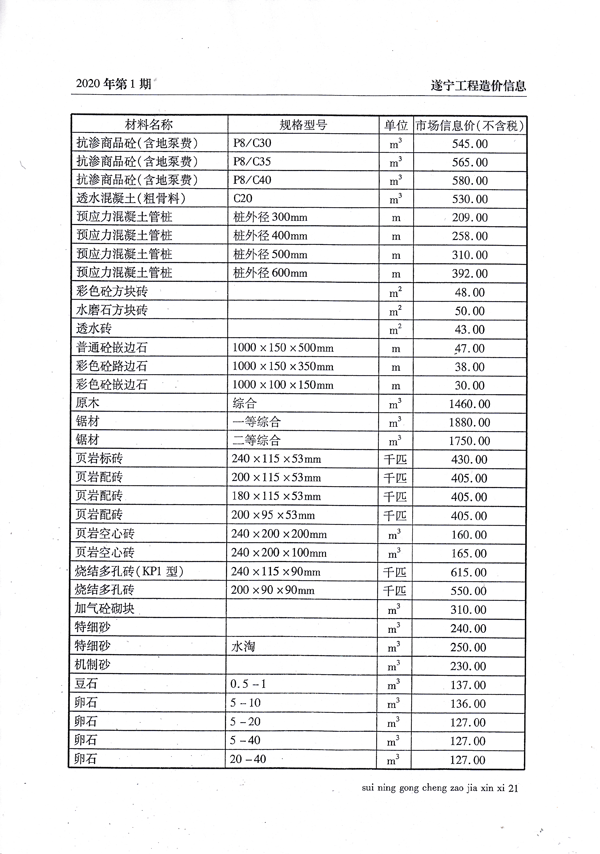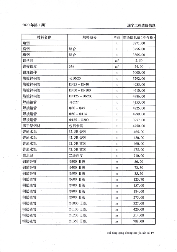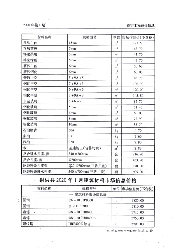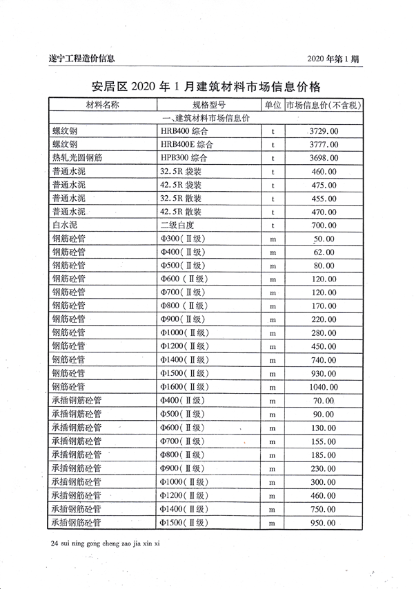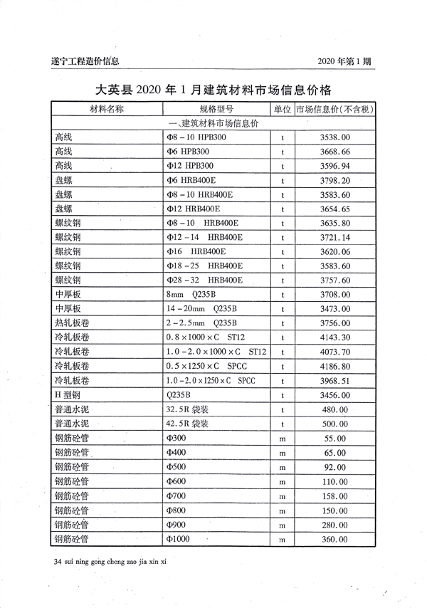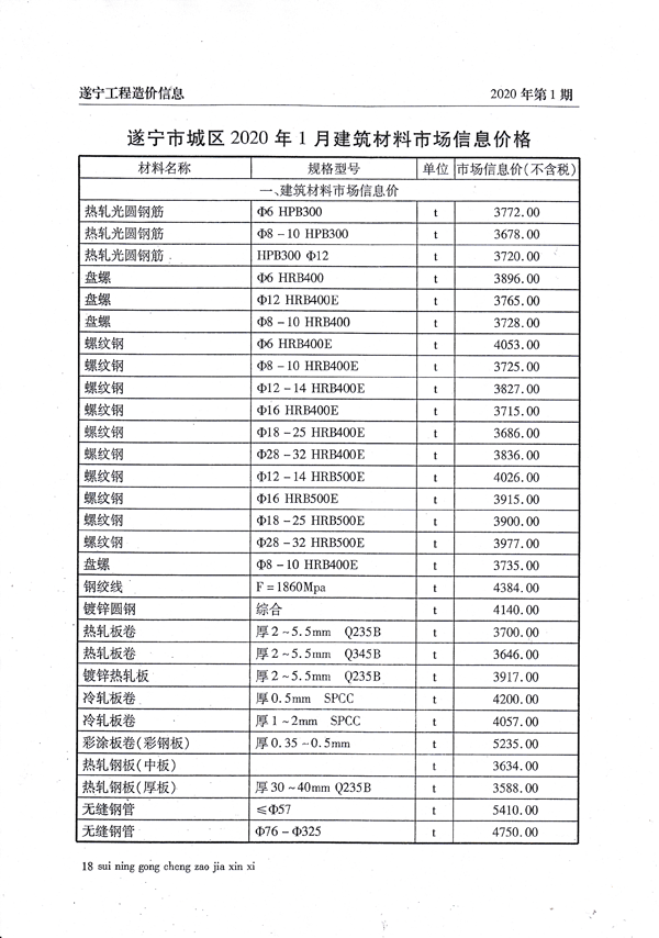 2020年1月建材价格