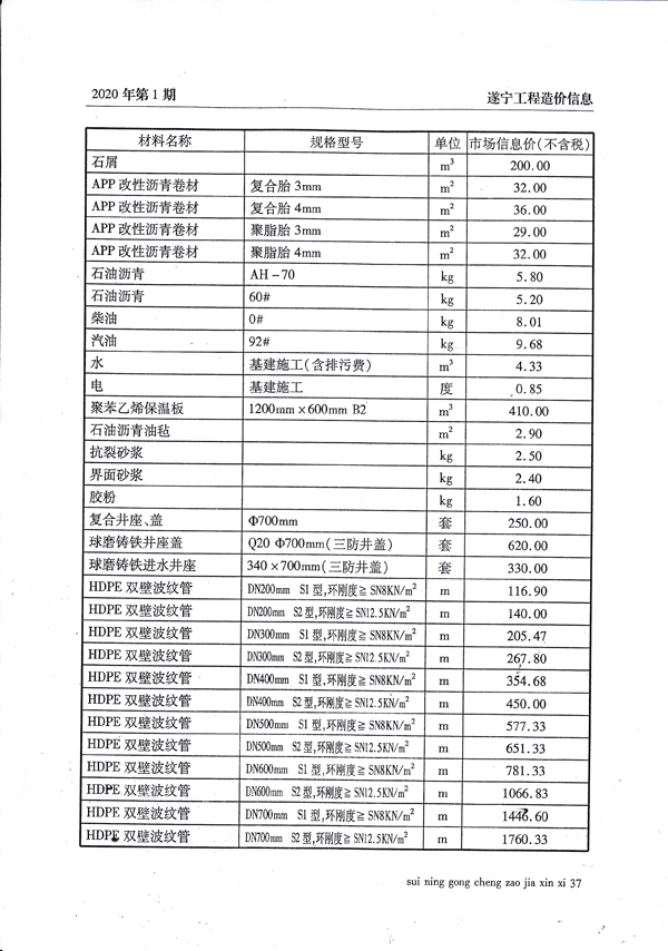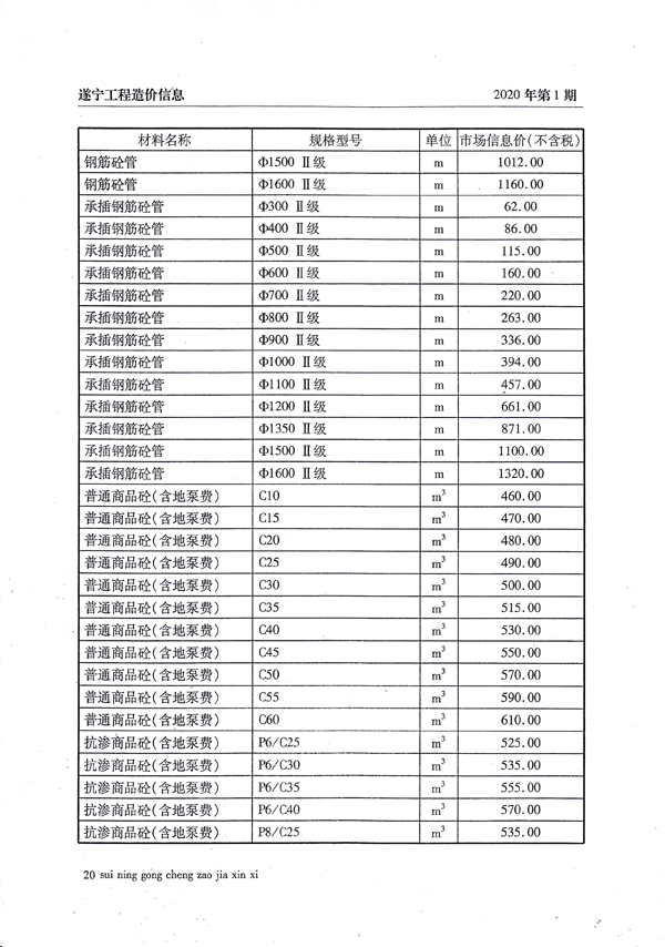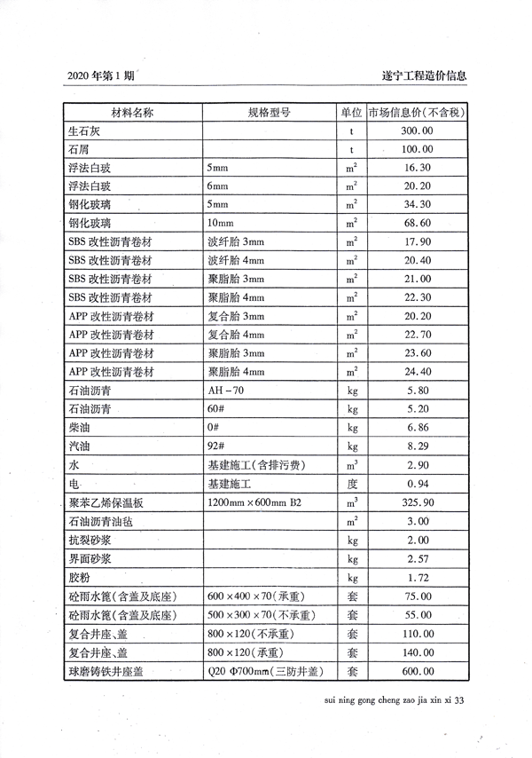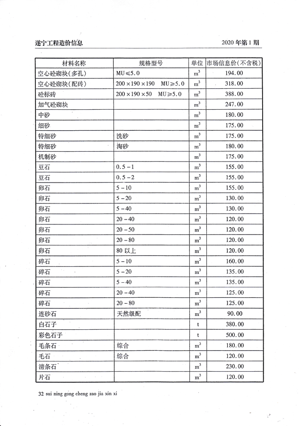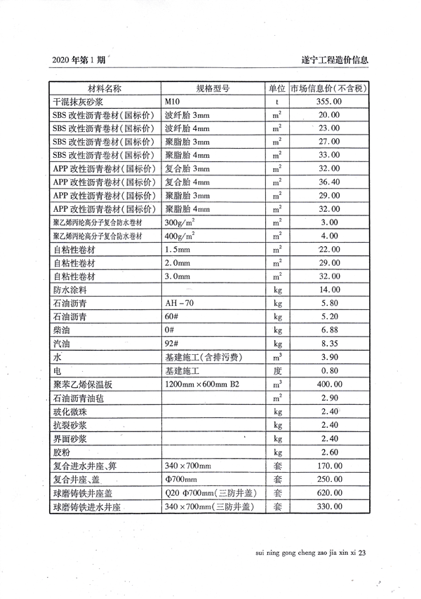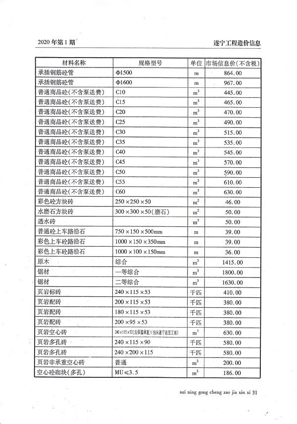 2020年1月建材价格