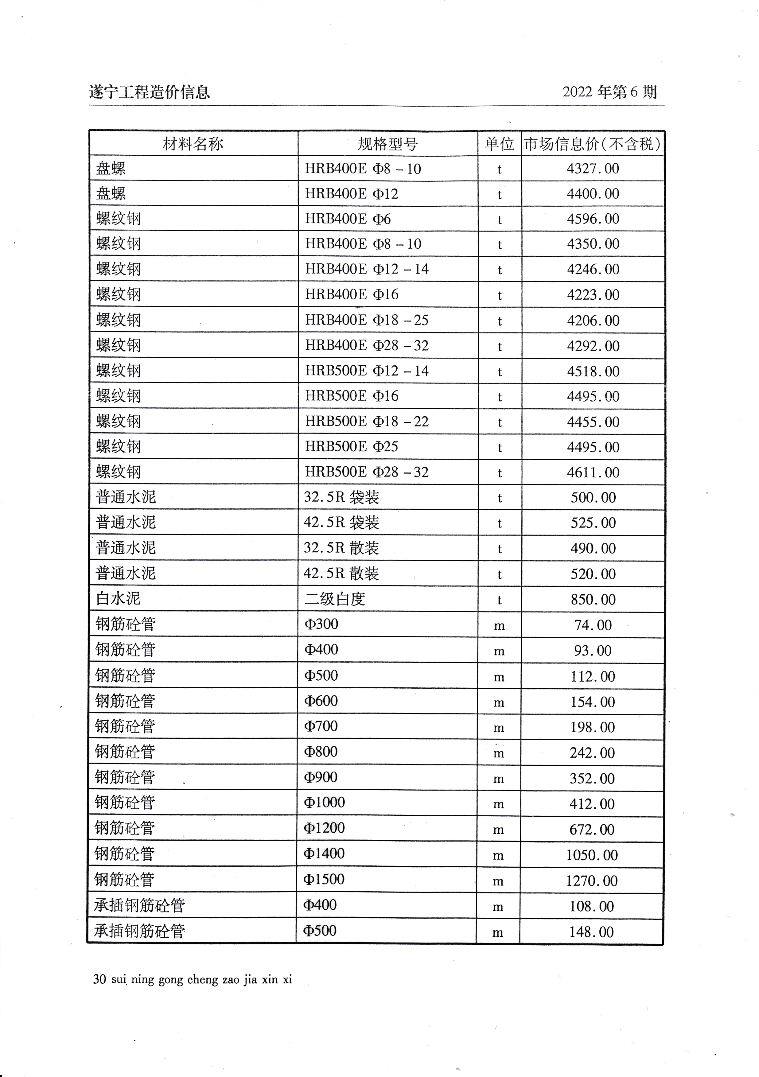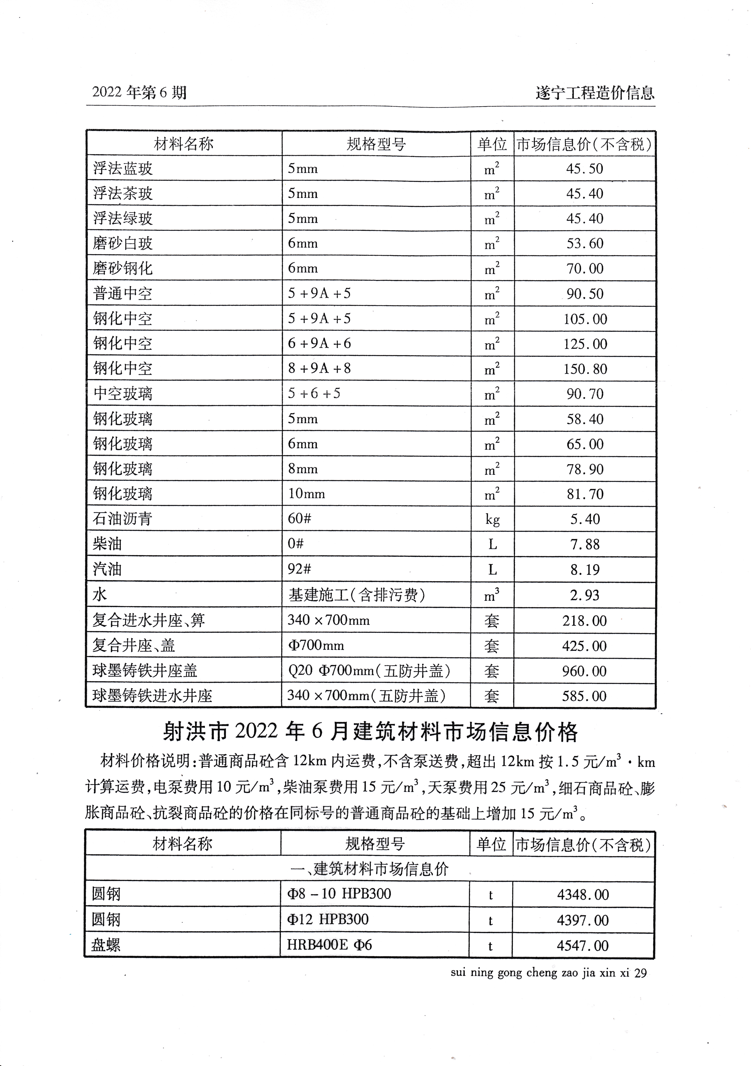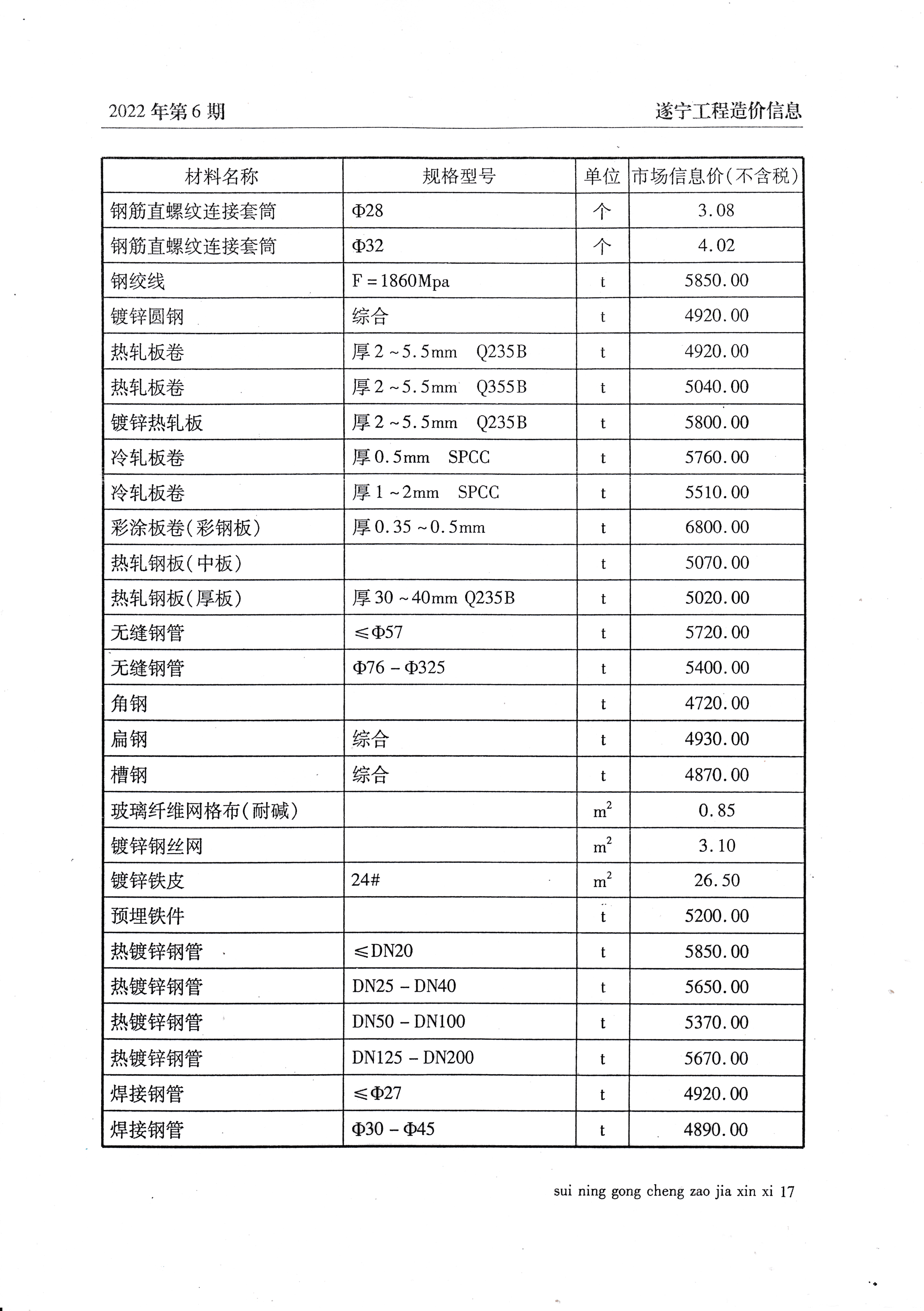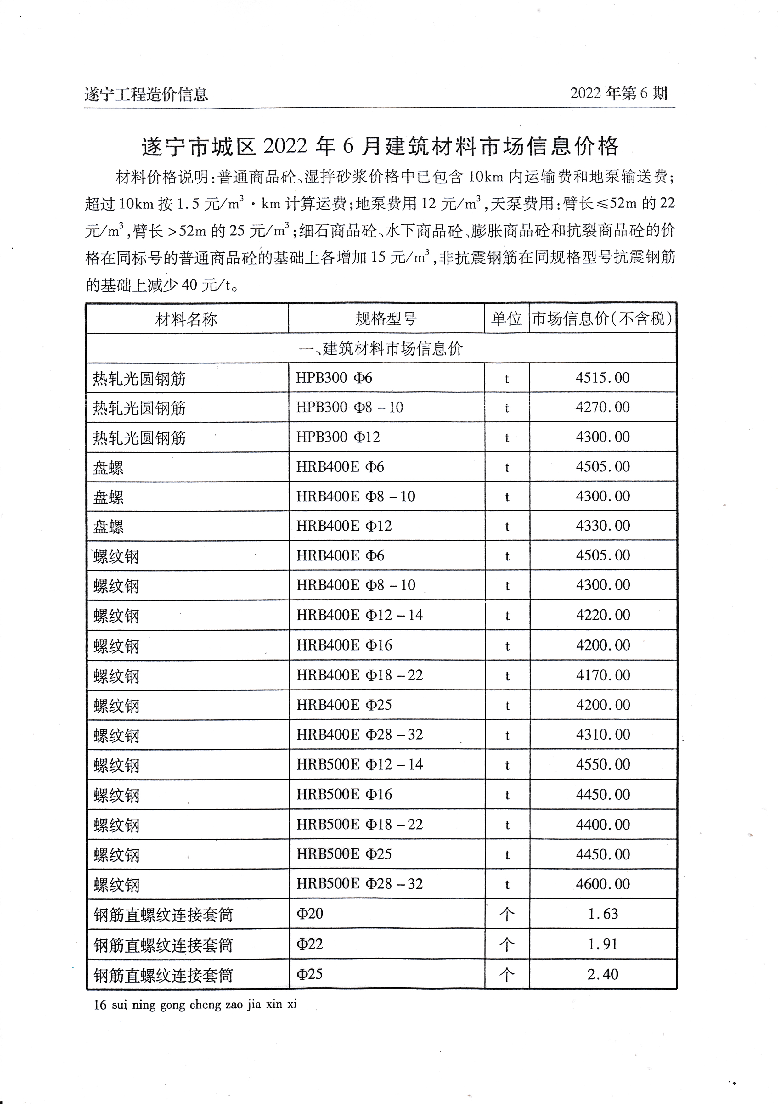 2022年6月建材价格