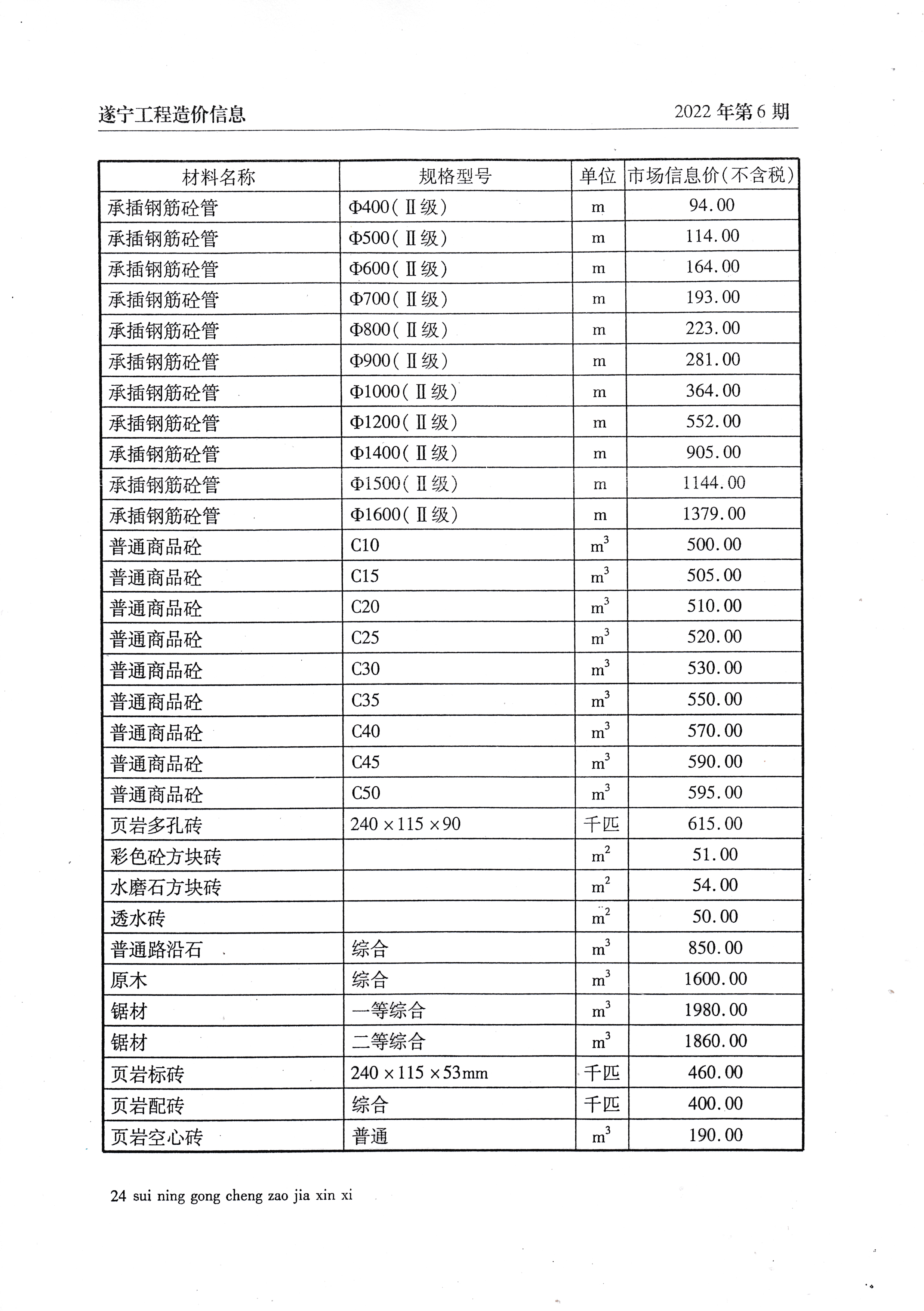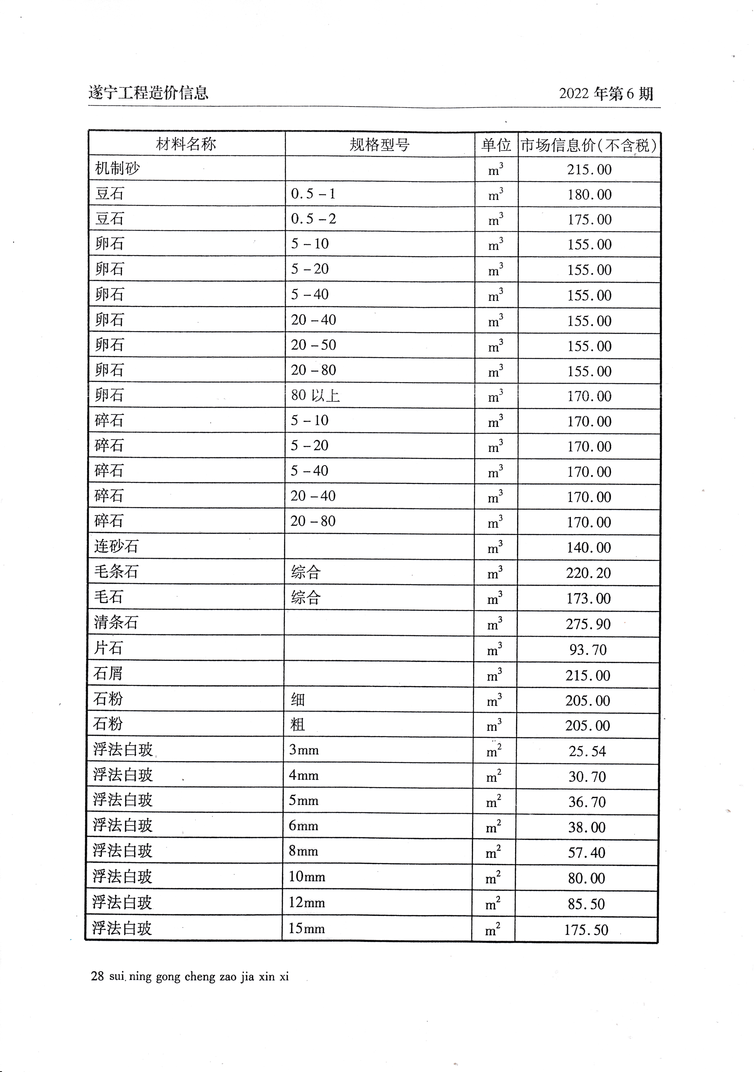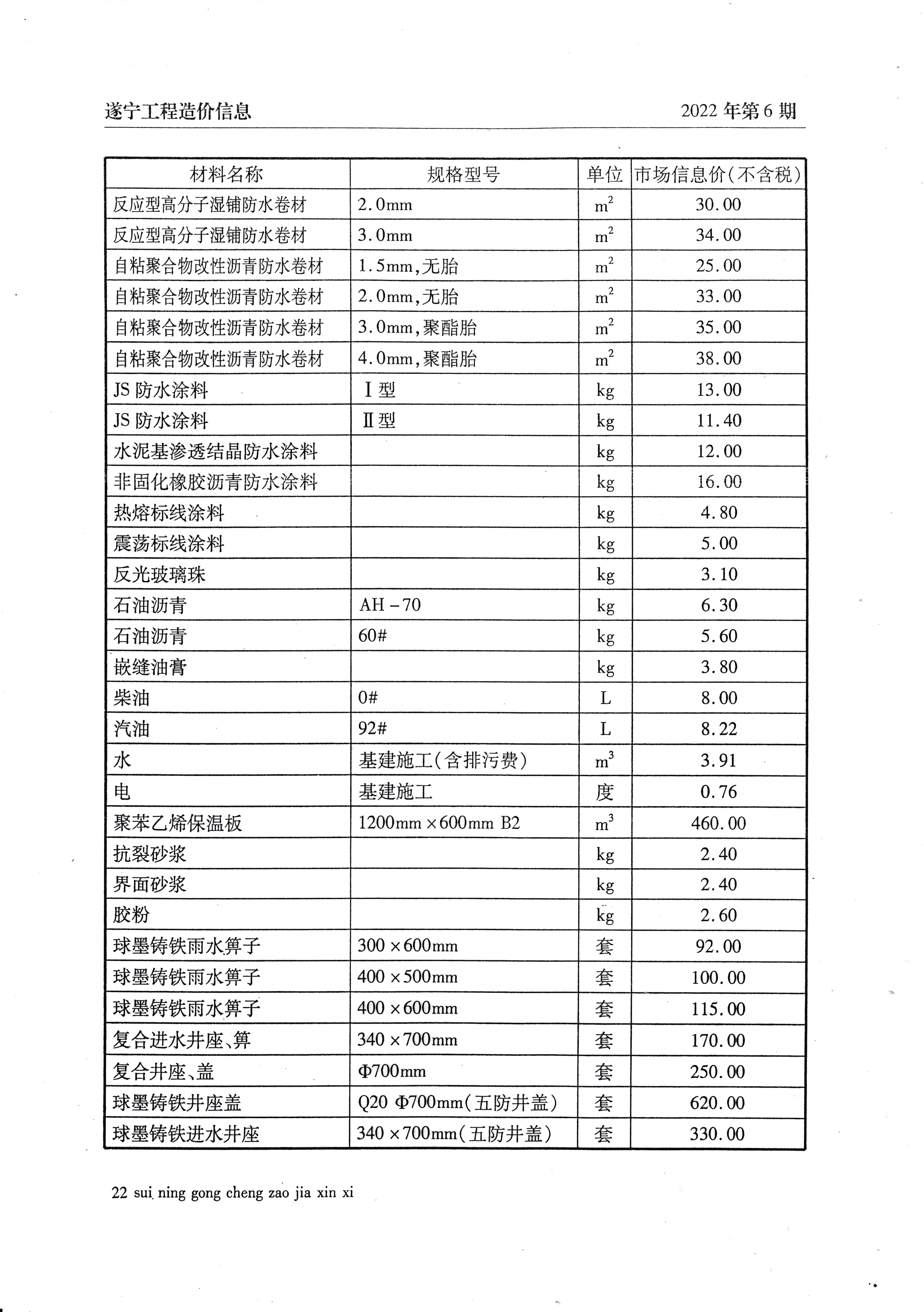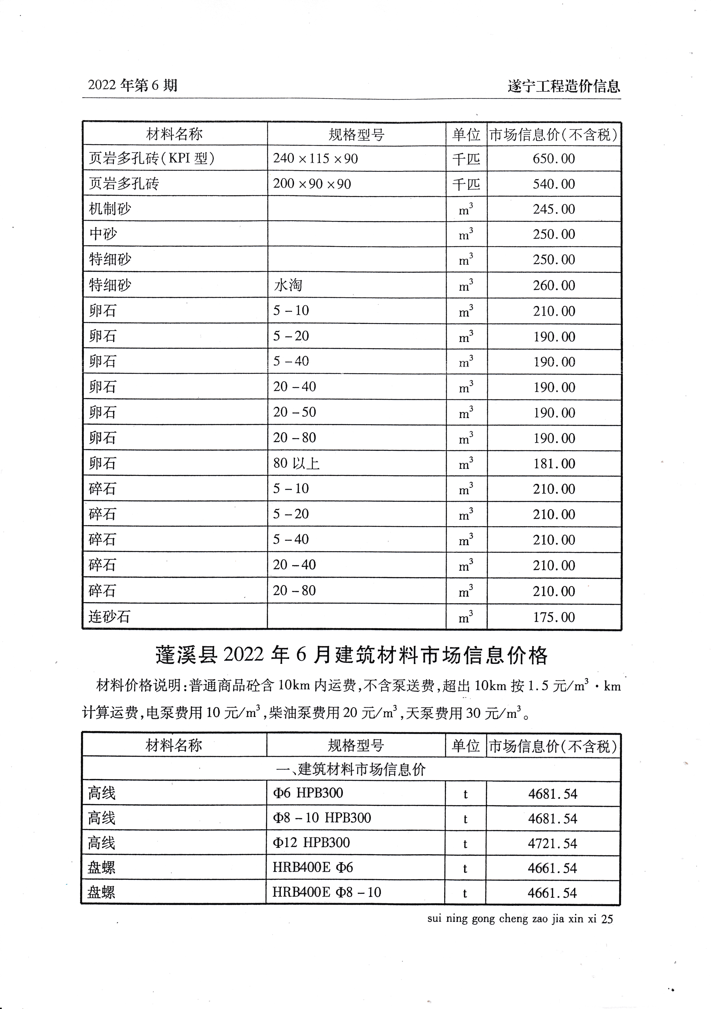 2022年6月建材价格
