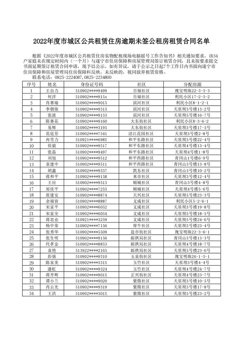2022年度市城区公共租赁住房逾期未签公租房租赁合同名单