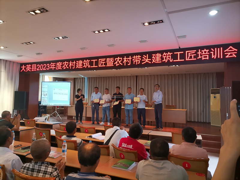 会上,县住房城乡建设局副局长梁星同志宣读了《遂宁市住房和城乡建设局关于公布首届“遂宁市星级农村建筑工匠”名单的通知》,向我县首届“遂宁市星级农村建筑工匠”获得者颁发了奖杯和荣誉证书,县住房城乡建设局局长何英华同志希望参加培训的各位工匠要向遂宁市星级农村建筑工匠学习,学习他们服从行业管理、建房品质过硬、群众满意度高、传帮带作用好、无违法违规行为,起到示范、引领、带头作用,并从“三个需要”阐述了本次培训班的目的和意见,要求各位工匠回去后要当好政策法规的宣传员、规范标准的践行者、农房安全的守护员。