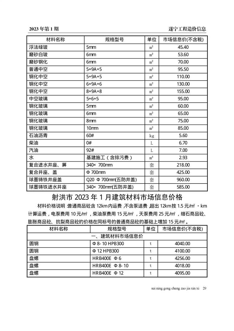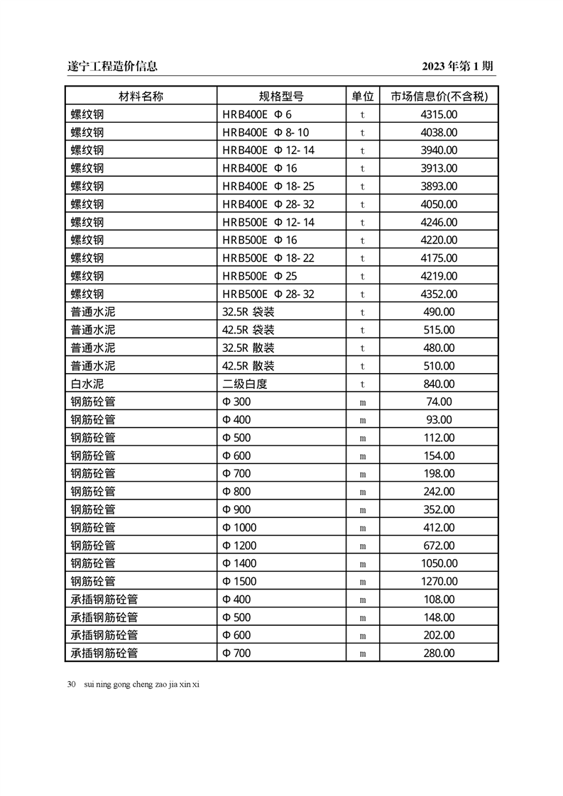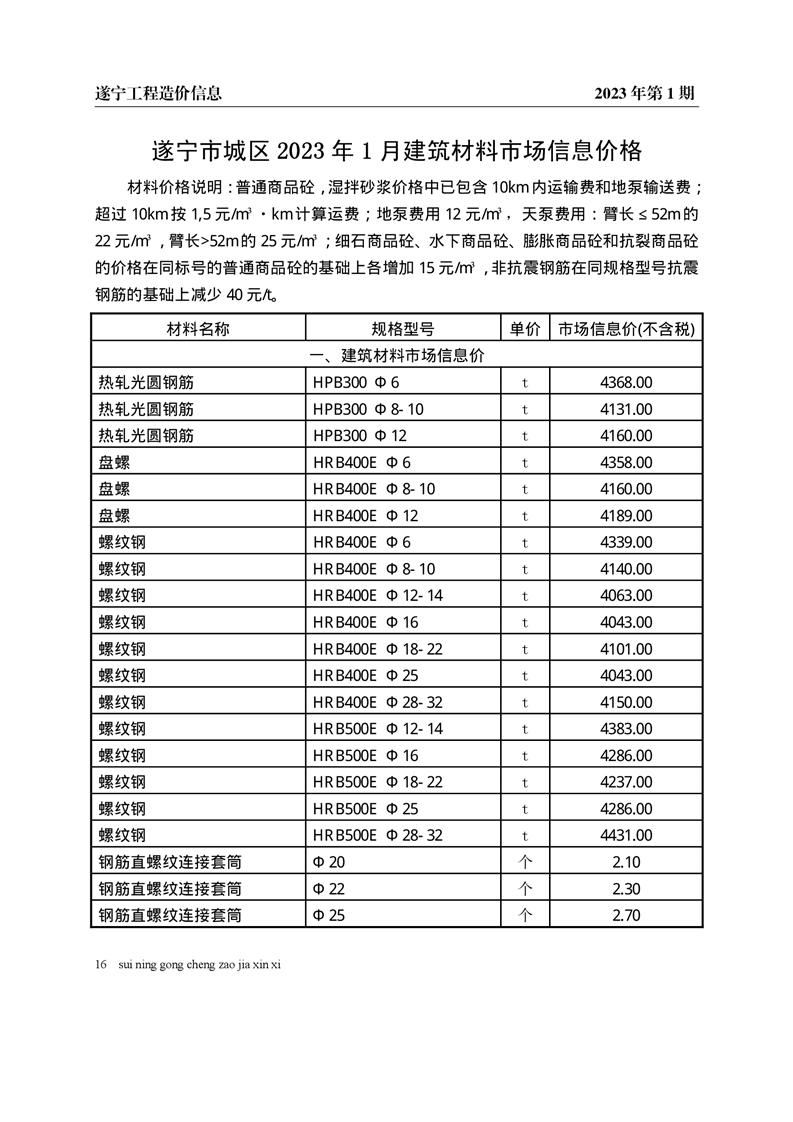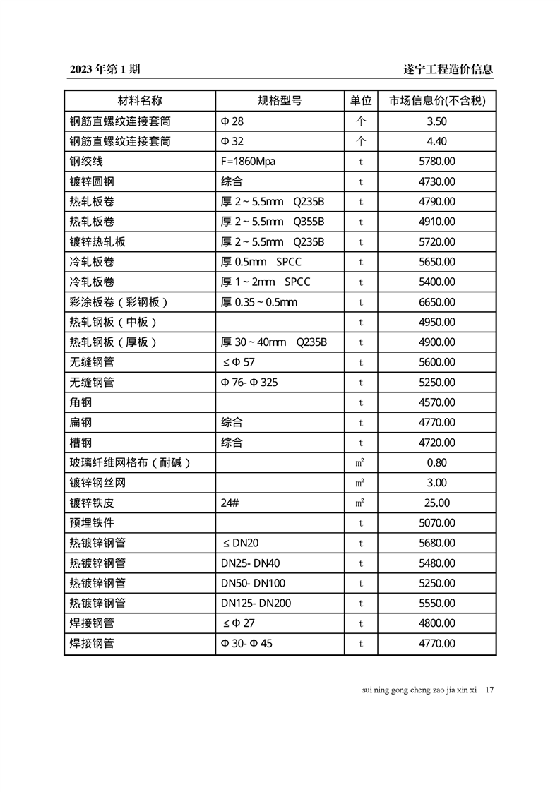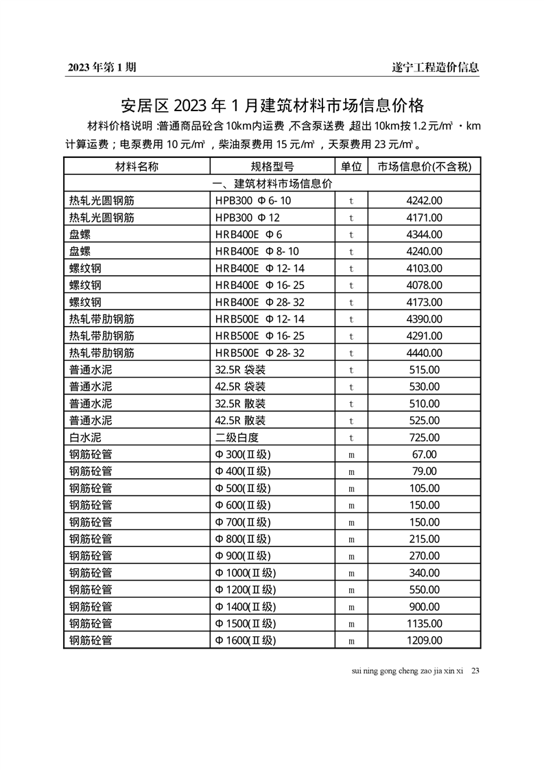 2023年1月建材价格