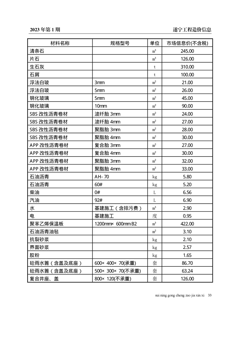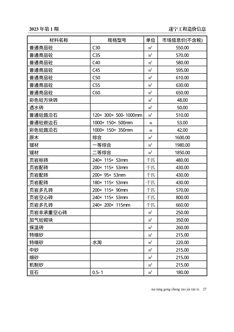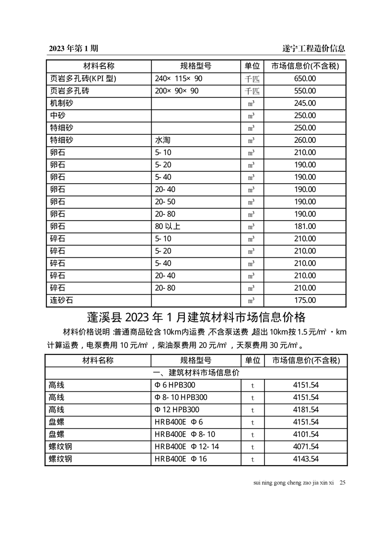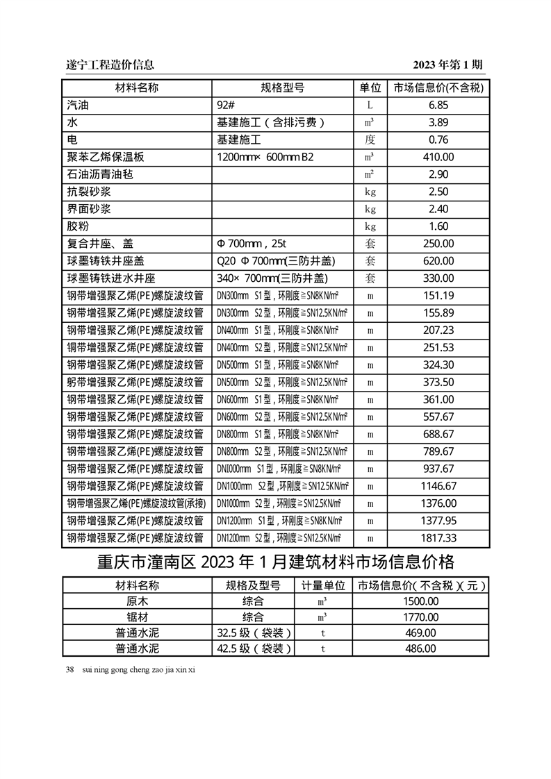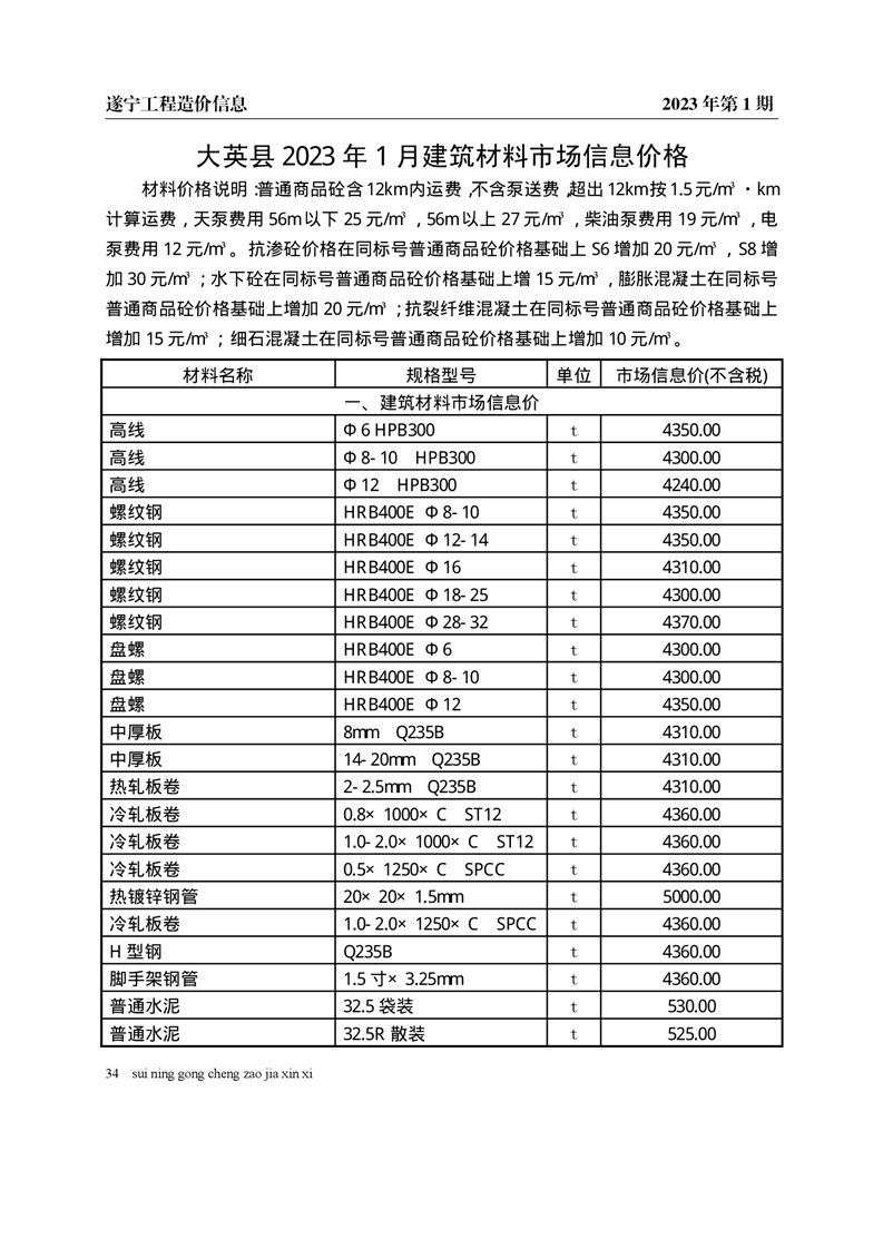 2023年1月建材价格