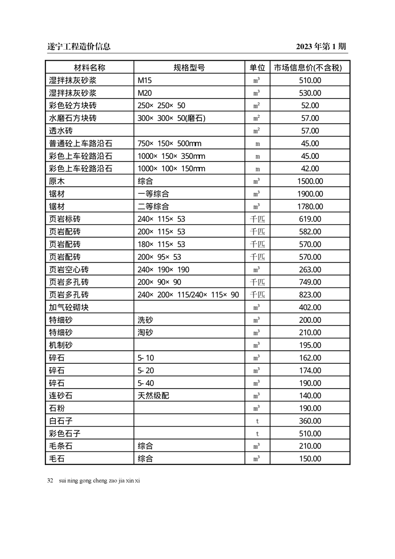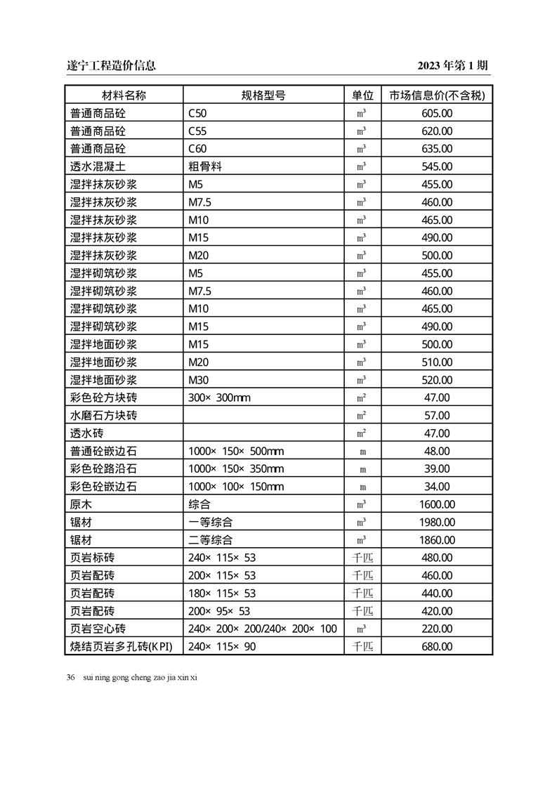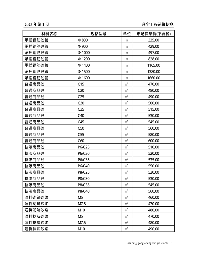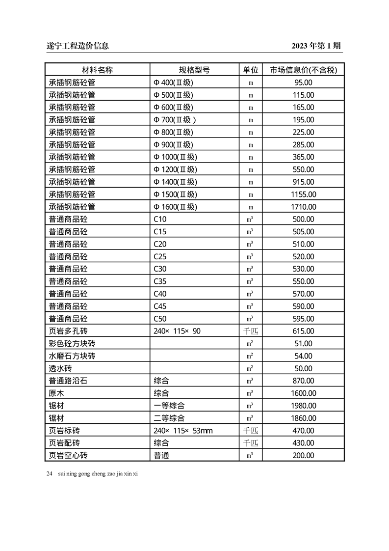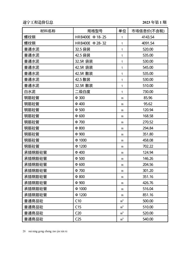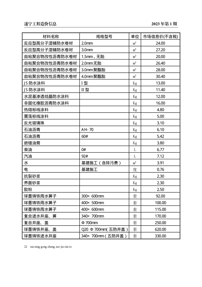 2023年1月建材价格