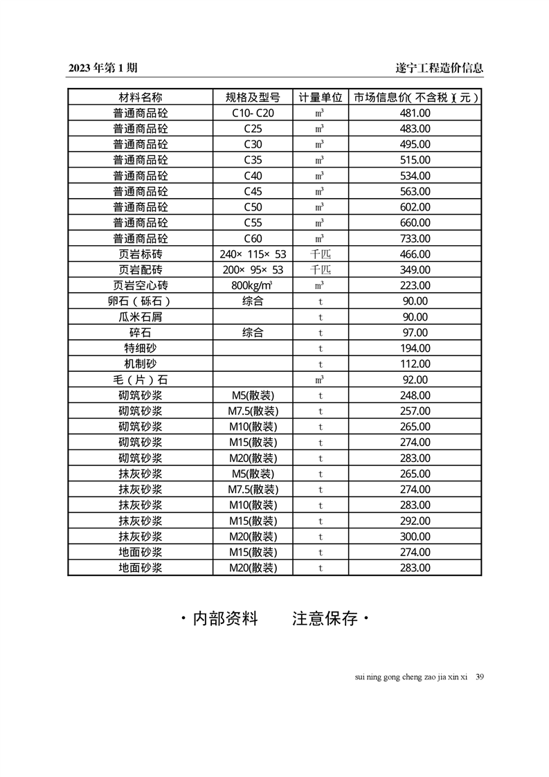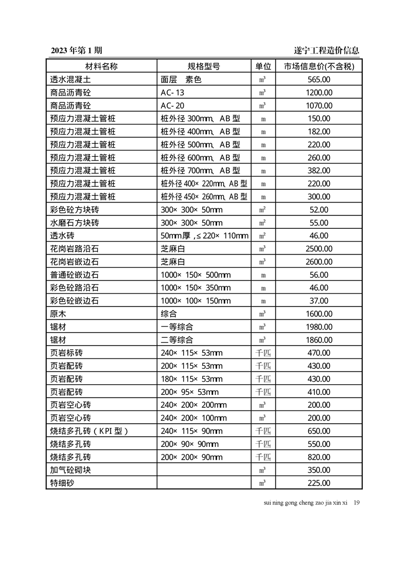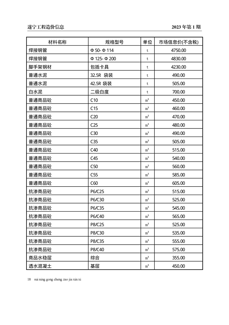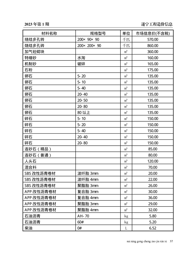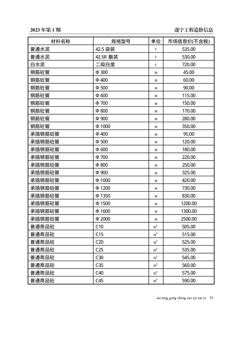 2023年1月建材价格