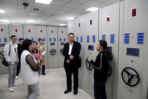 马驯川馆长一行实地参观了我馆党史教育专栏、业务工作文化长廊、档案管理科、声像档案工作室、档案库房等。座谈会上,双方就城建档案馆基本情况、电子档案归档情况等内容进行介绍,分享了在档案信息资源建设、档案管理利用、档案信息安全管理与服务创新等方面的经验及成果,对联合验收中城建档案验收流程及承诺制办理情况,以及建设工程电子文件和声像文件报送工作开展了讨论和交流,同时对目前工作中的难点、问题进行了深入探讨,相互分享经验。