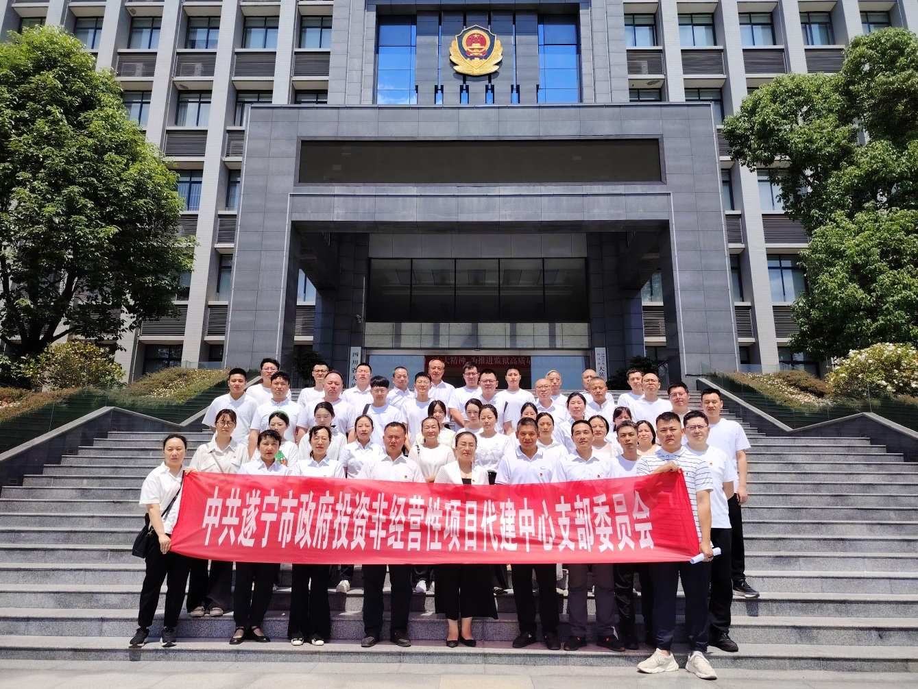 为认真贯彻落实党纪学习教育工作要求,结合清廉住建行动实际,市代建中心党支部于5月21日组织全体干部职工赴大英县警示教育基地开展警示教育活动。跟随讲解员指引,全体人员先后参观了双正文化广场、警示教育基地长廊等。观看了“欲望之门”“贪腐之门”“悔恨之门”水雾投影以及审计系统、国有企业腐败案件罪犯的现身说法视频及监区内实时监控。