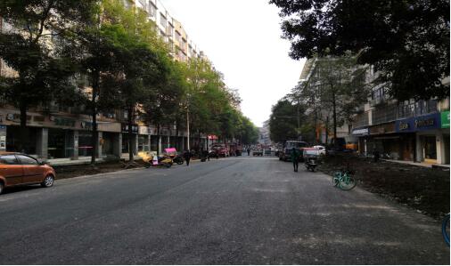拆除施工围挡的育才西路路面