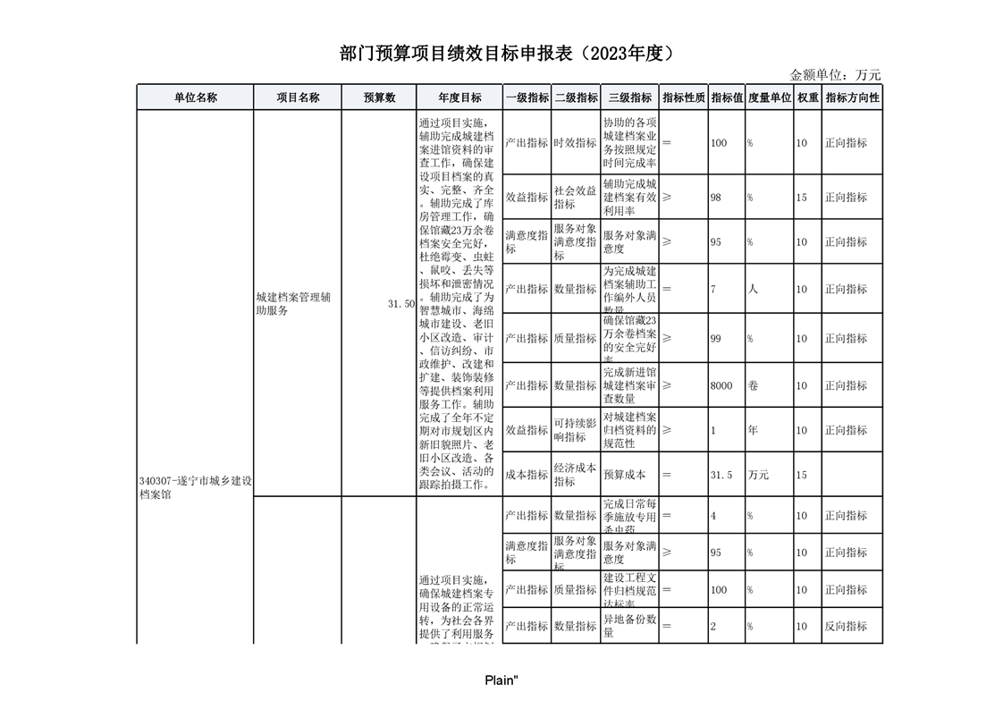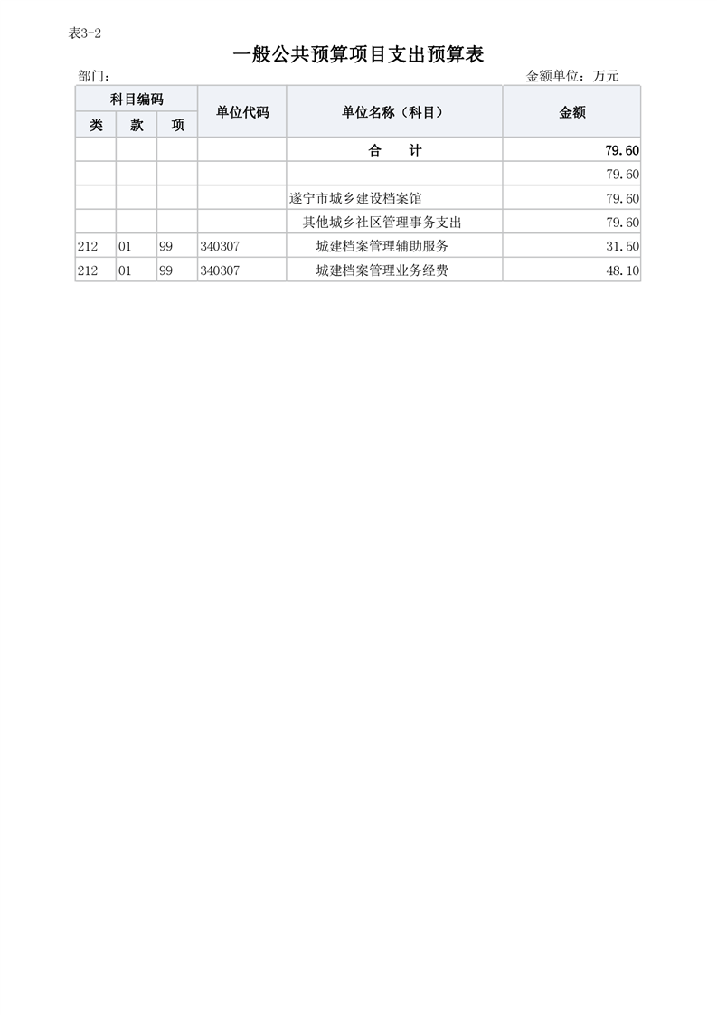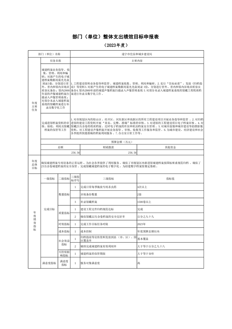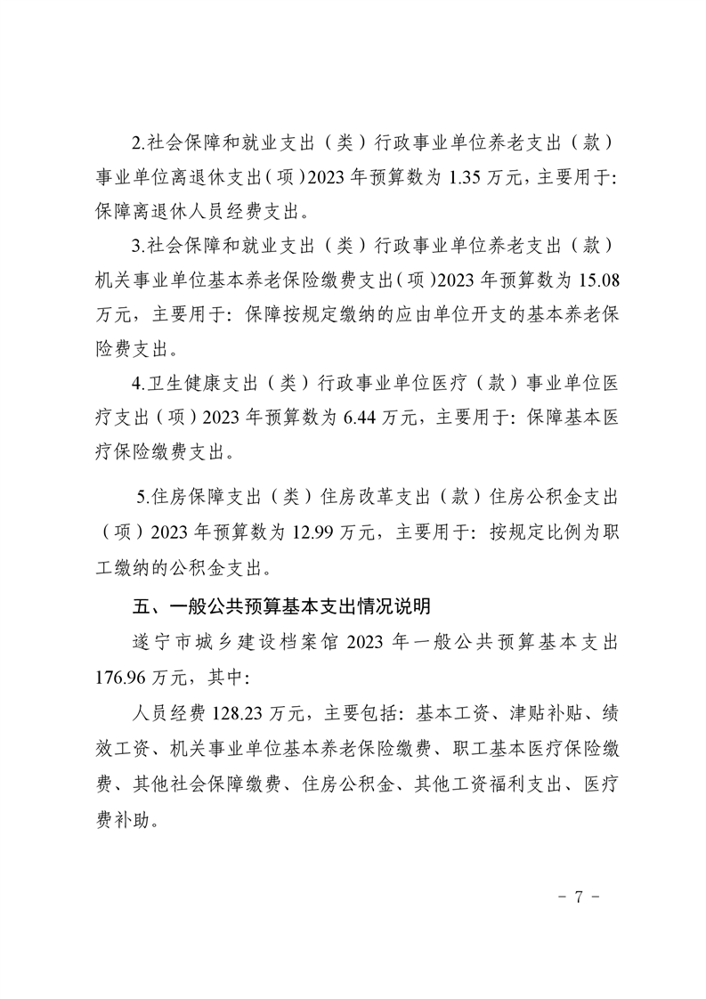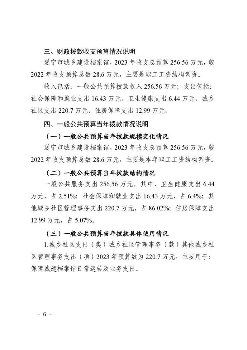 遂宁市城乡建设档案馆2023年单位预算