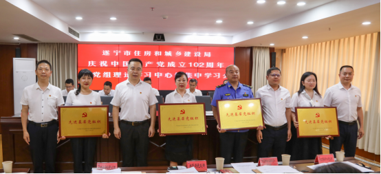 近日,遂宁市住房和城乡建设局召开庆祝中国共产党成立102周年暨党组理论学习中心组集中学习会。会议重温了入党誓词,表彰了市住房城乡建设局2023年优秀共产党员、优秀党务工作者、先进基层党组织并现场颁奖,传达学习了习近平总书记关于党的建设的重要论述,局中心组成员进行了深入交流研讨发言。市住房城乡建设局党组书记、局长(市城管执法局局长兼)邓勇同志参加会议并作《深入学习贯彻习近平新时代中国特色社会主义思想,推动市住房城乡建设系统党建工作再上新台阶》专题党课。