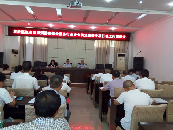为认真贯彻落实近期党中央、国务院及省委、省政府领导关于安全生产的重要批示精神和全国全省安全生产电视电话会议精神,按照《遂宁市安全生产大检查和十大专项整治行动总体工作方案》、《四川省住房和城乡建设厅关于集中开展全市住建领域安全生产大检查及专项整治行动工作方案》、《四川省住房和城乡建设厅关于印发 <全省物业服务行业“防风险保平安迎大庆”消防安全执法检查专项行动工作方案> 的通知》要求,区住建局联合区消防大队近期将在全区范围内开展一次既有房屋消防和物业服务行业安全执法检查专项行动。8月22日下午,组织全区所有物业服务企业召开了安居区部署会。