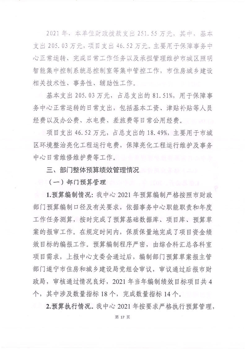 遂宁市住房和城乡建设事务中心2021年单位决算公开编制说明