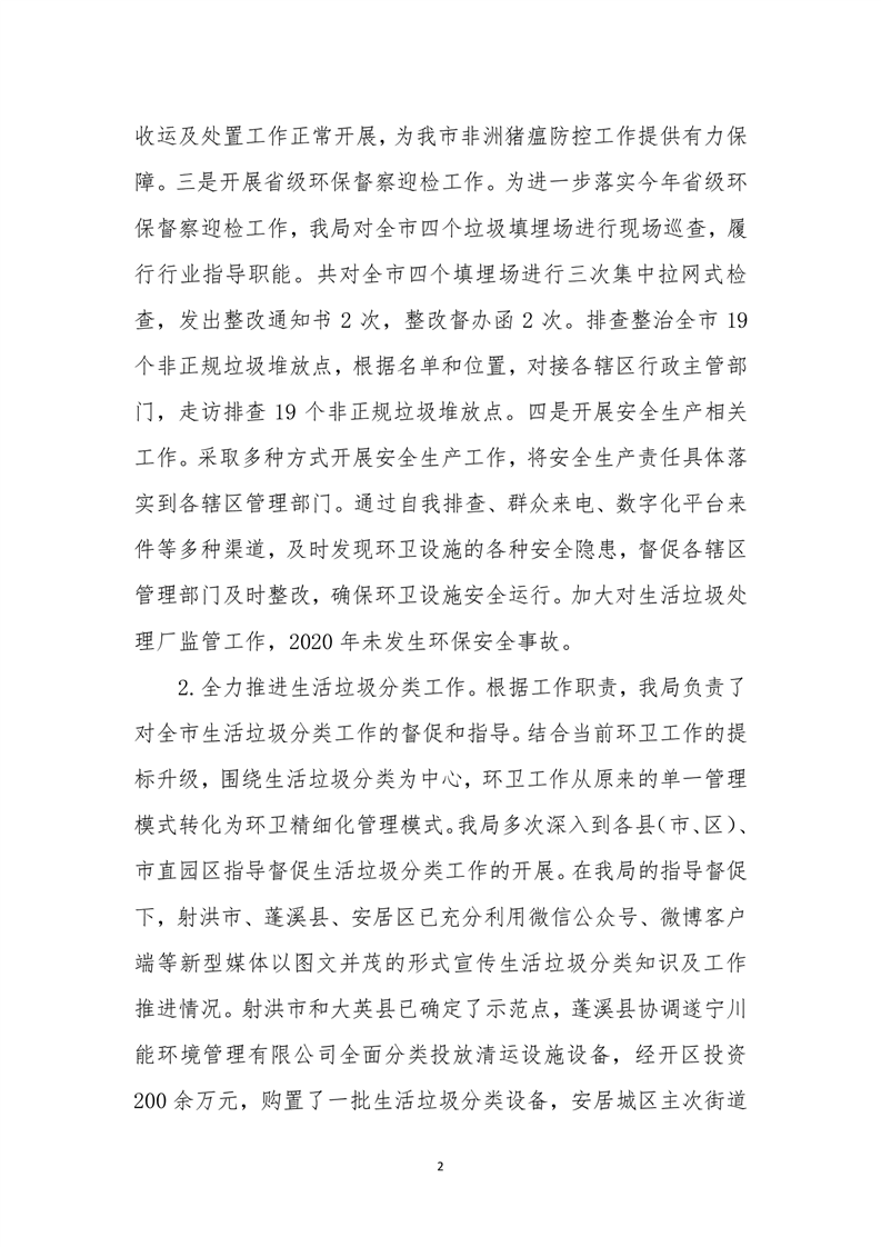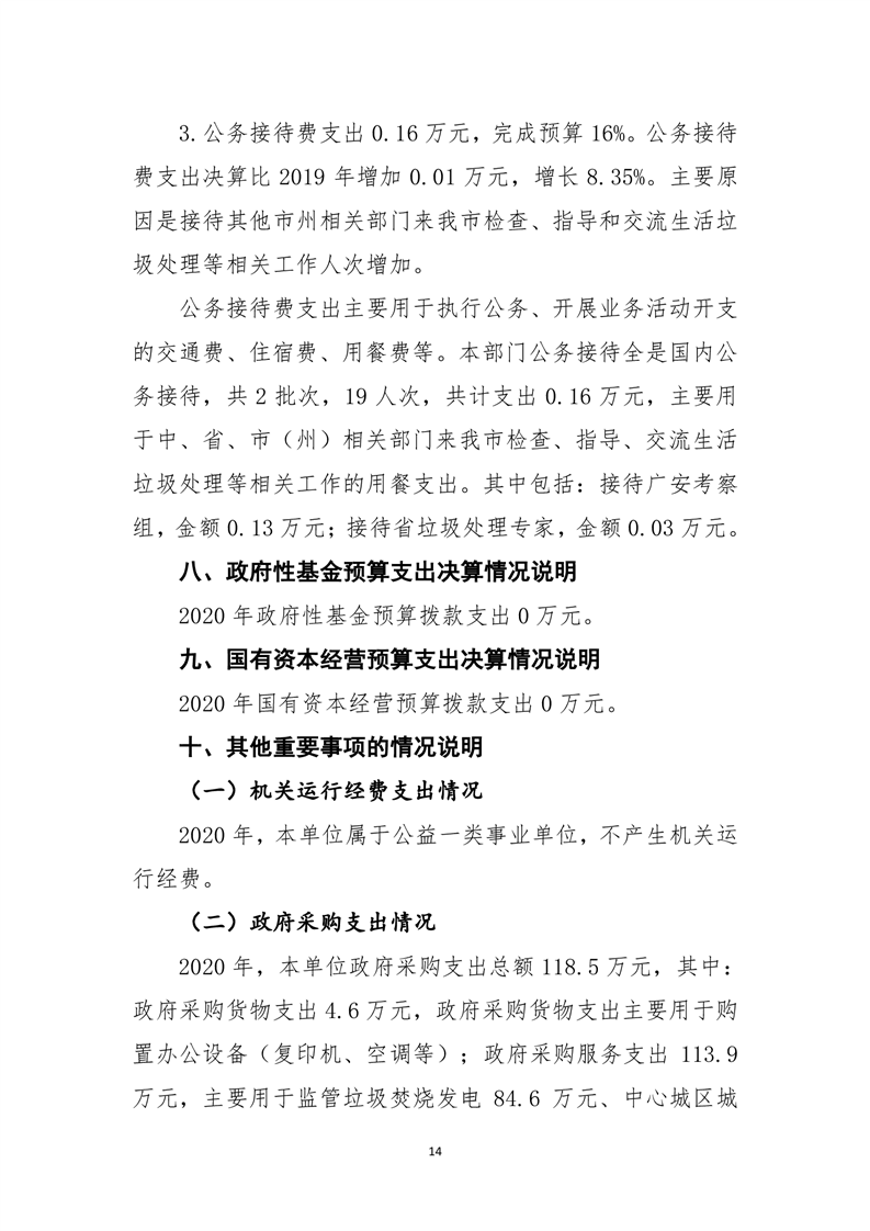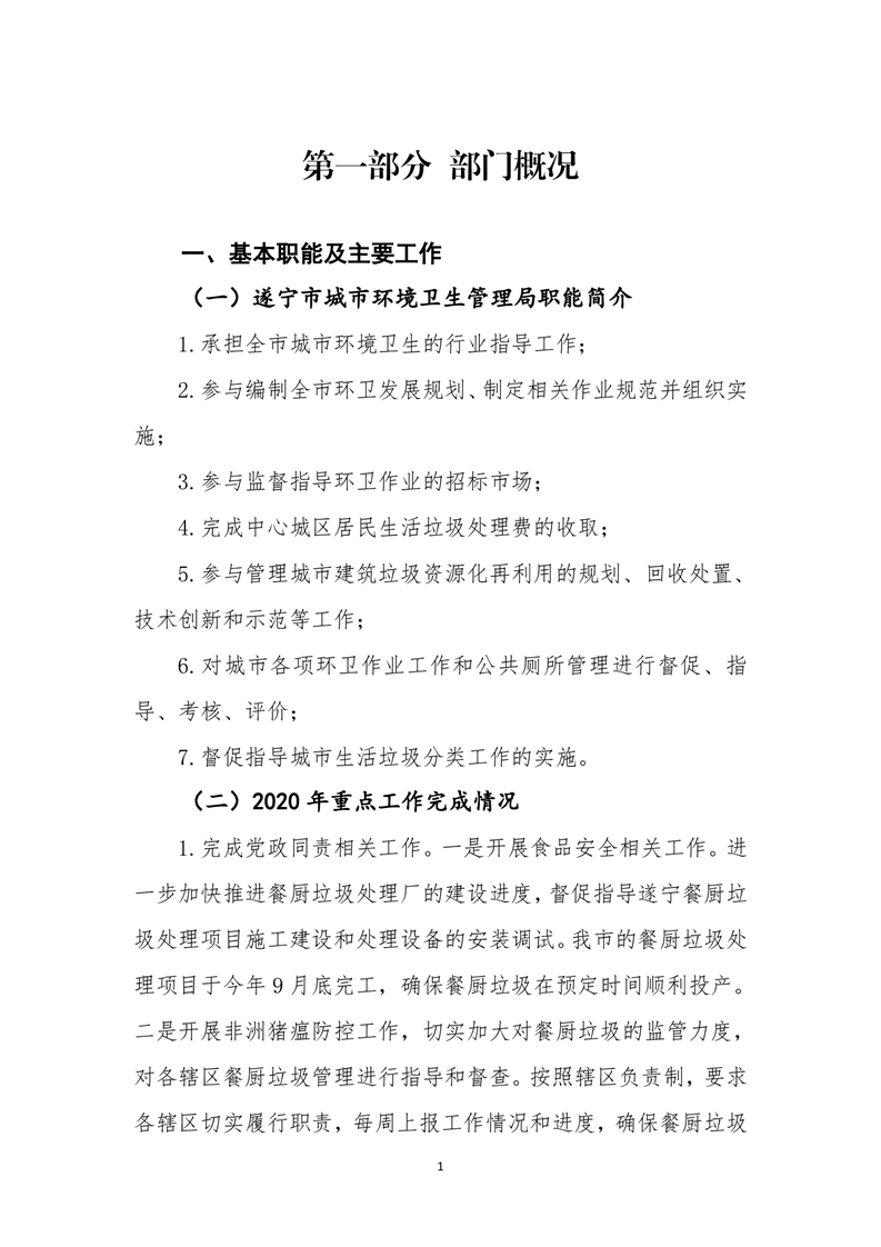 遂宁市城市环境卫生管理局2020年部门决算编制说明