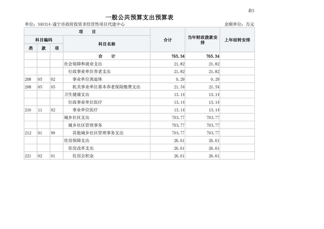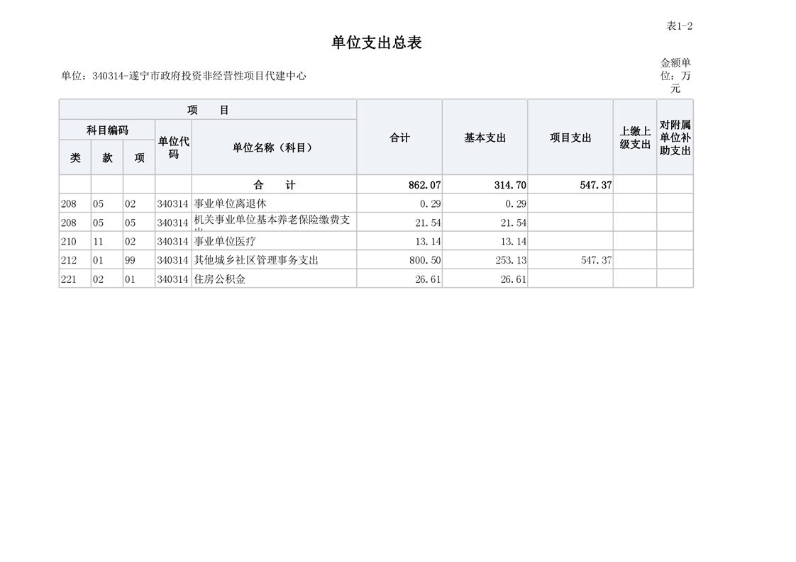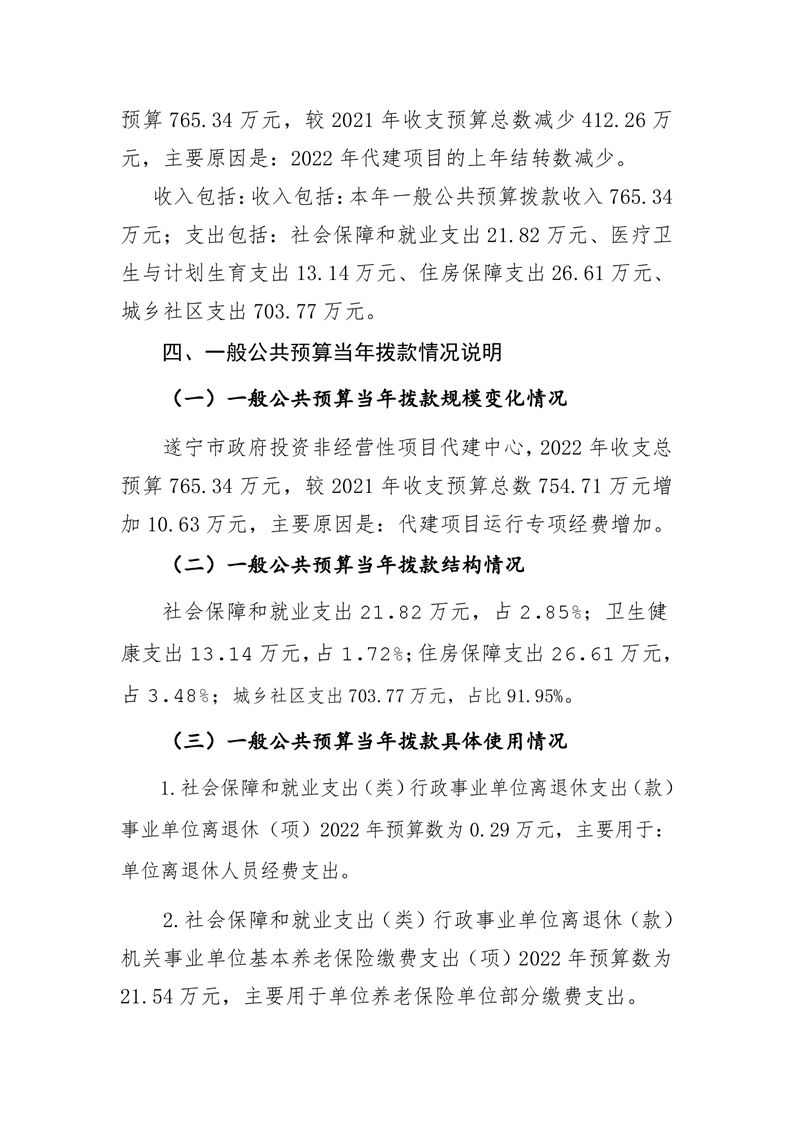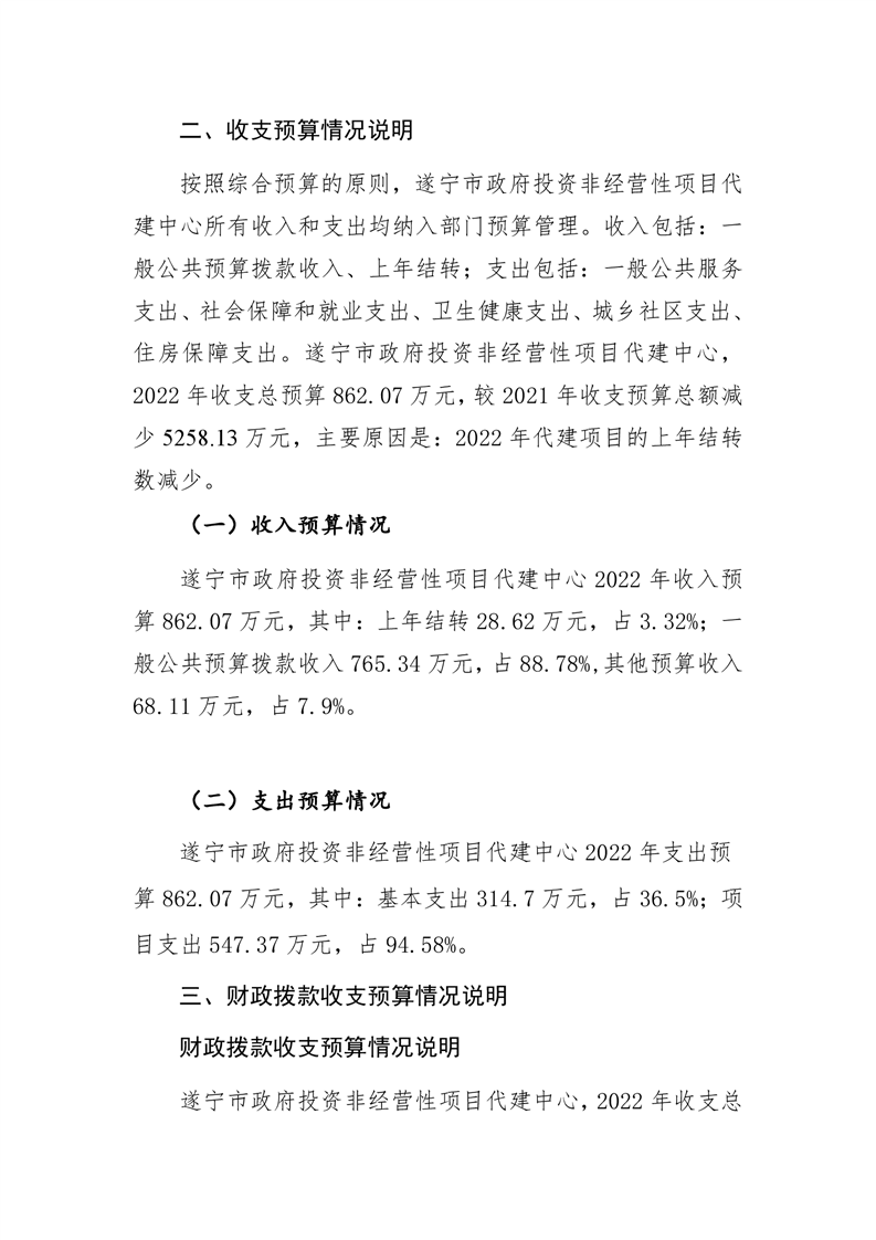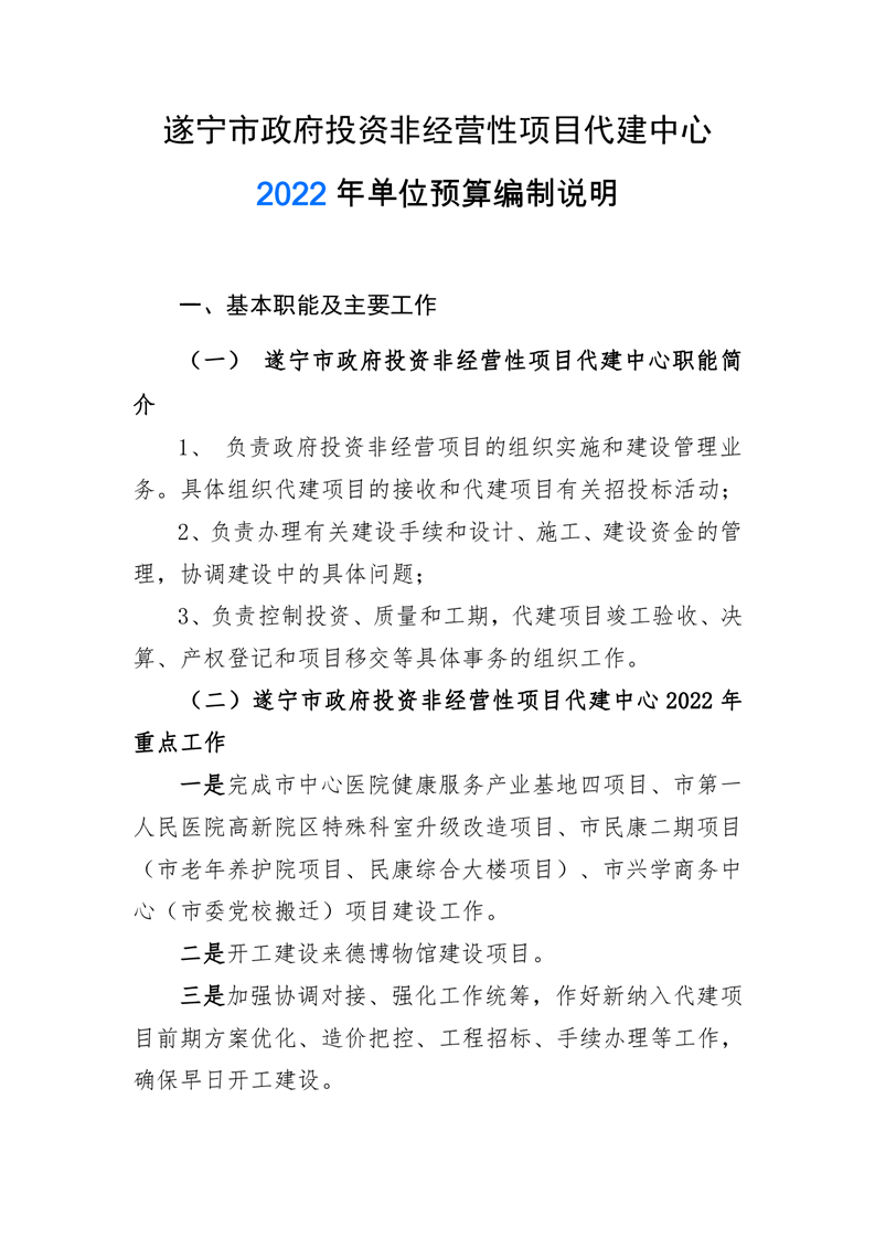遂宁市政府投资非经营性项目代建中心2022年单位预算