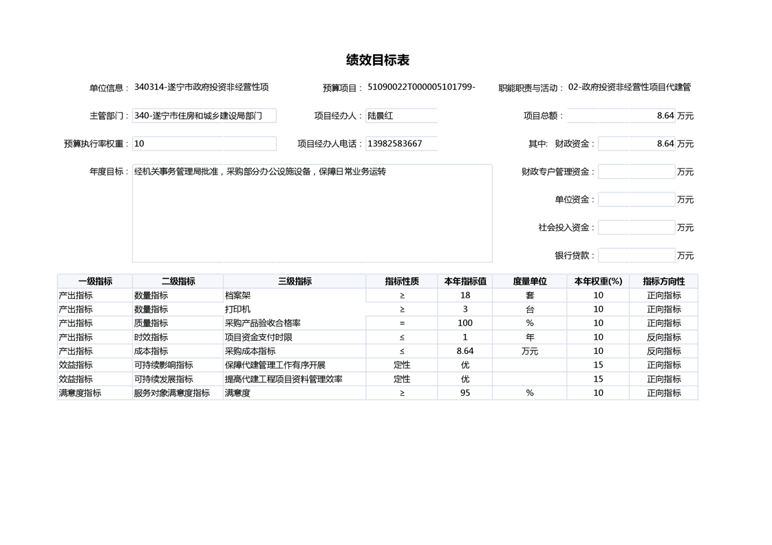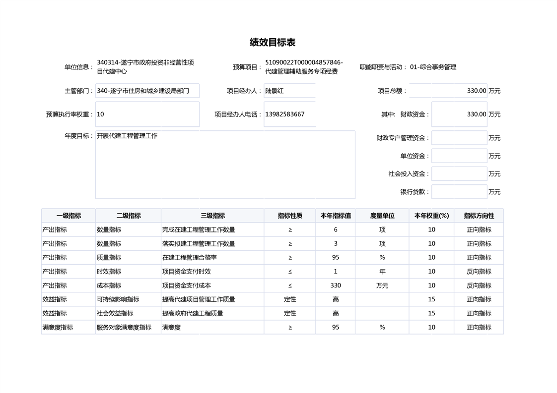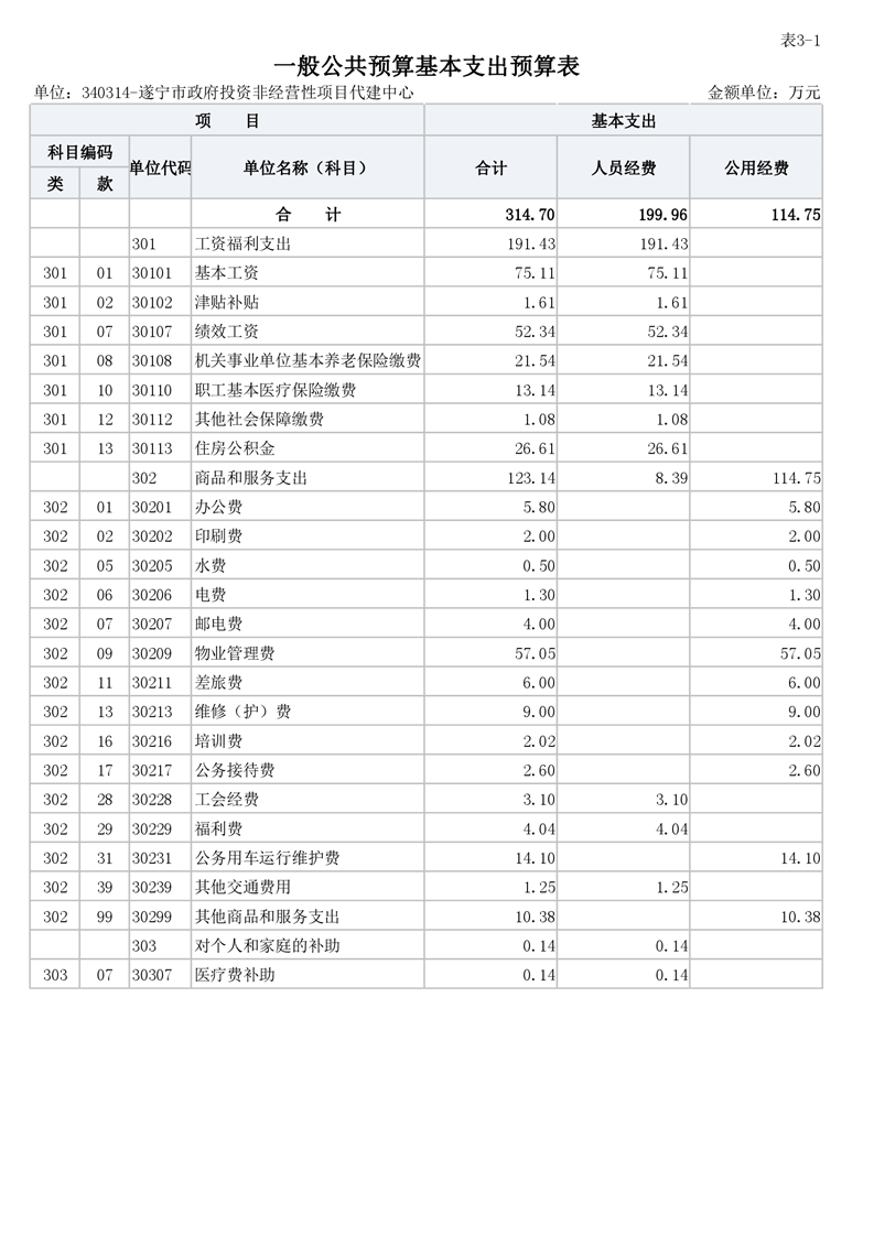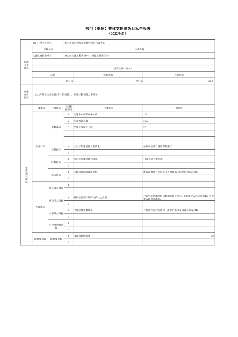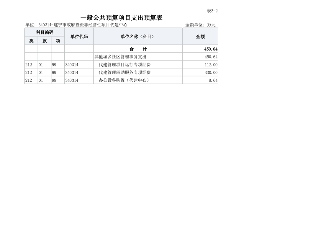 遂宁市政府投资非经营性项目代建中心2022年单位预算