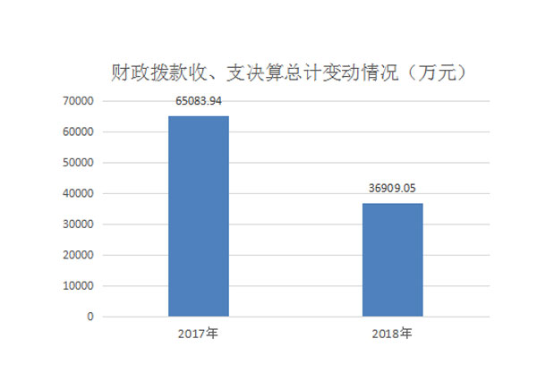 2018年度财政拨款收、支总计36,909.05万元,与2017年相比减少28,174.89万元,下降43.29%。主要原因是本年无海绵城市建设项目资金。