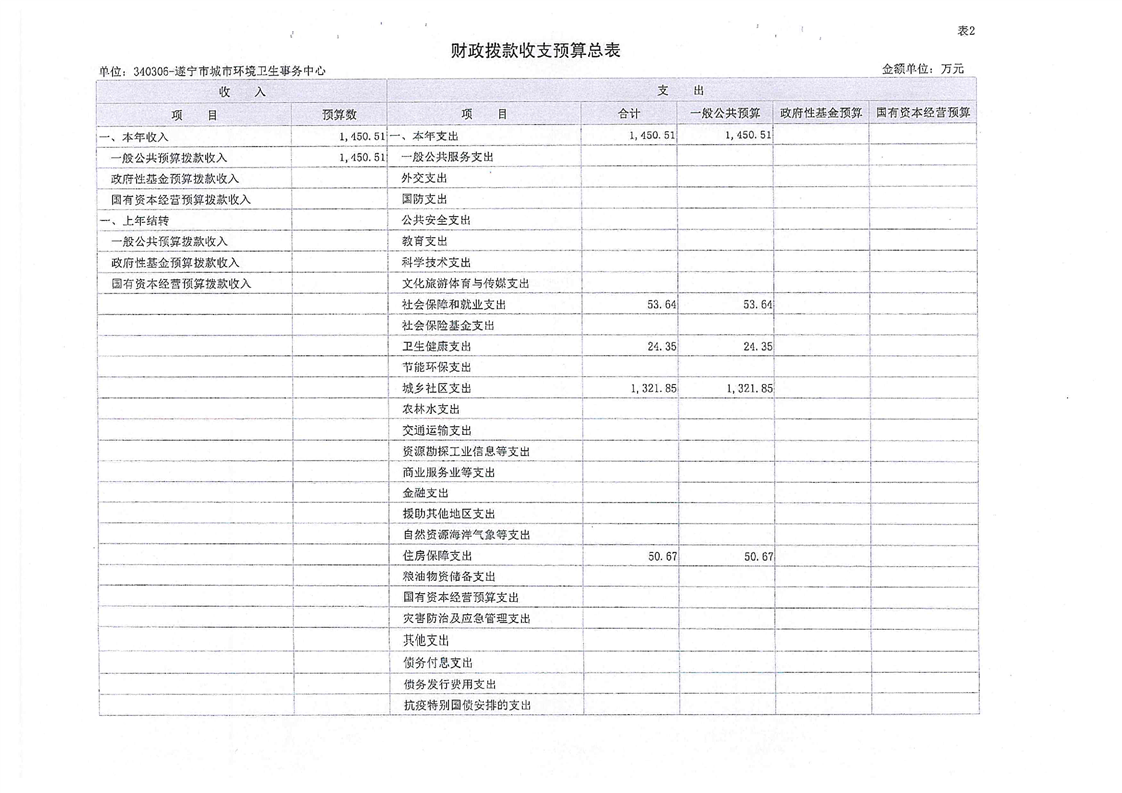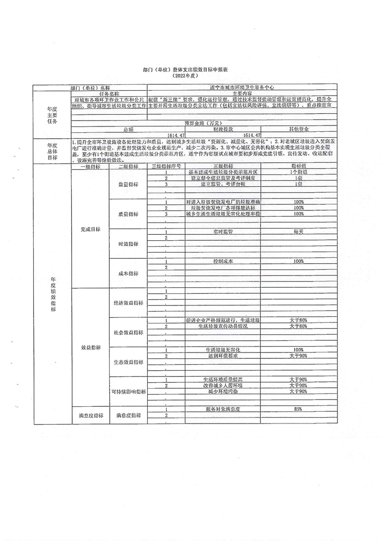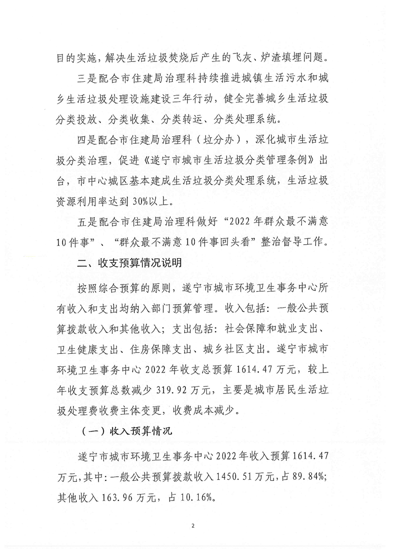 遂宁市城市环境卫生事务中心2022年单位预算