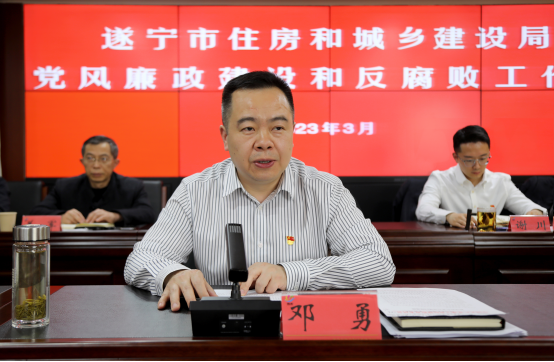 3月31日,遂宁市住房和城乡建设局召开全市住建系统2023年度党风廉政建设和反腐败工作会议,集中观看《贪欲的尽头》警示教育片,传达学习二十届中央纪委二次全会、省纪委十二届二次全会和市纪委八届三次全会精神,组织学习《四川省领导干部操办婚丧喜庆事宜的规定》《遂宁市住房和城乡建设局2023年全面从严治党、党风廉政建设和反腐败工作要点》《遂宁市住房和城乡建设局“清廉住建”行动实施方案》等,回顾总结2022年全市住建系统党风廉政建设和反腐败工作,分析存在问题,安排部署2023年任务。市住房城乡建设局党组书记、局长邓勇出席会议并讲话。