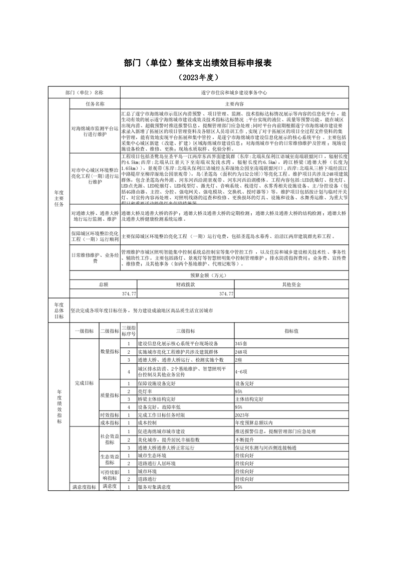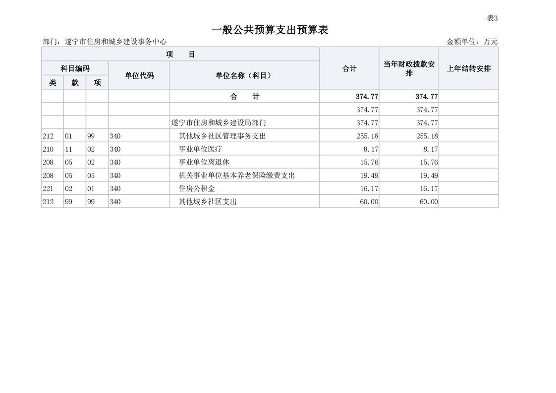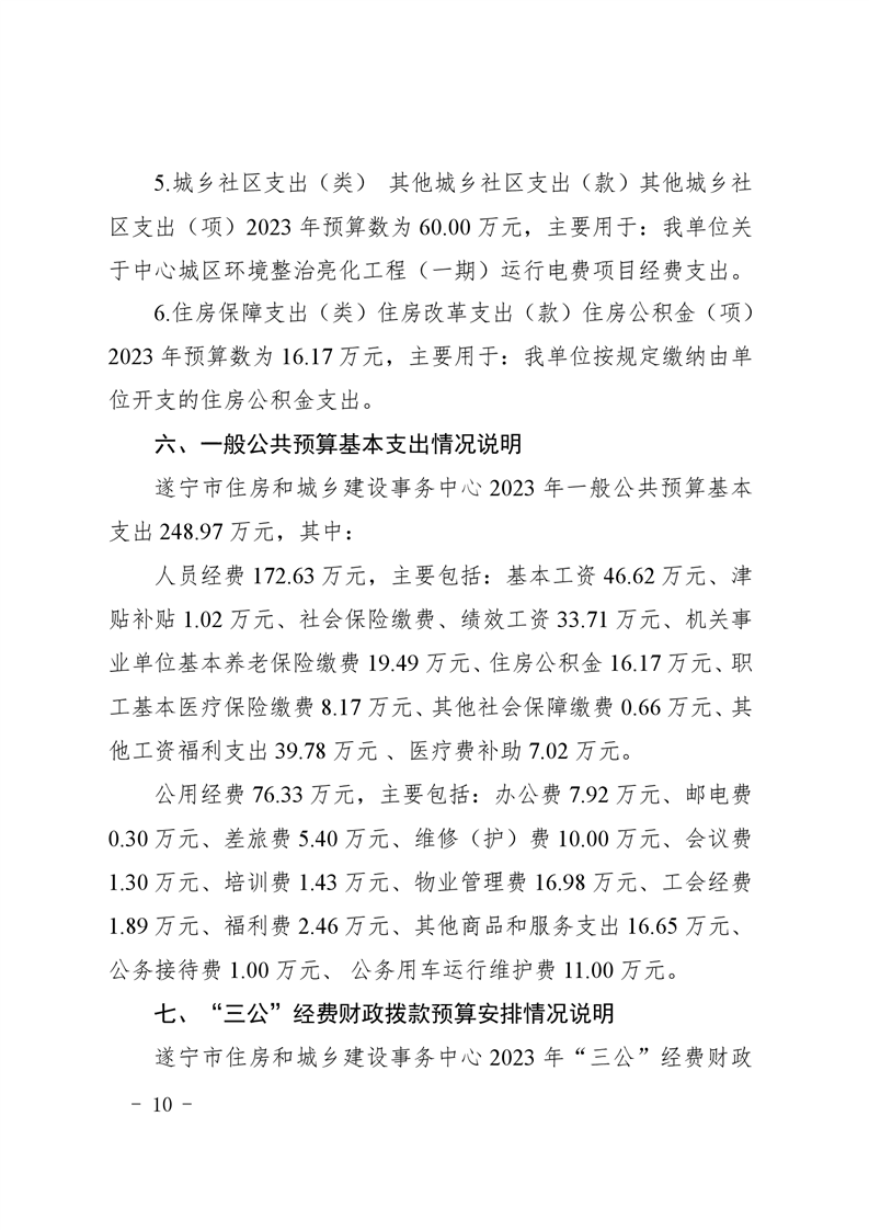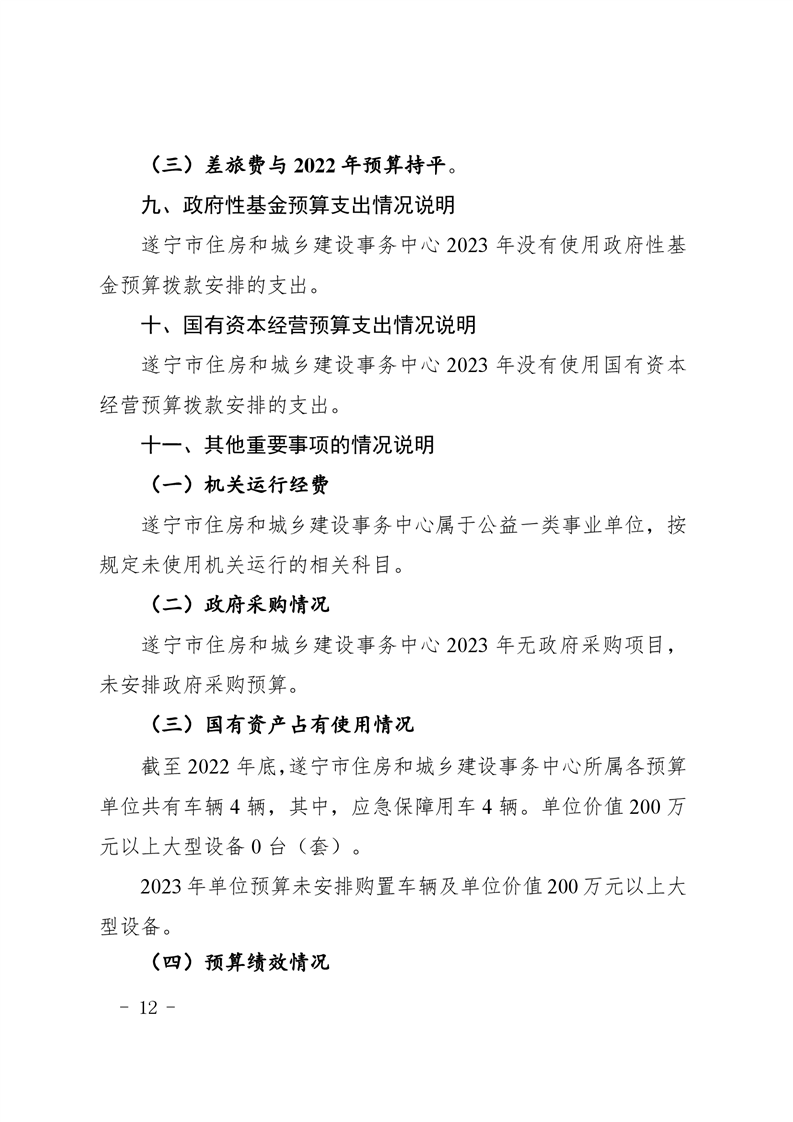遂宁市住房和城乡事务中心2023年单位预算