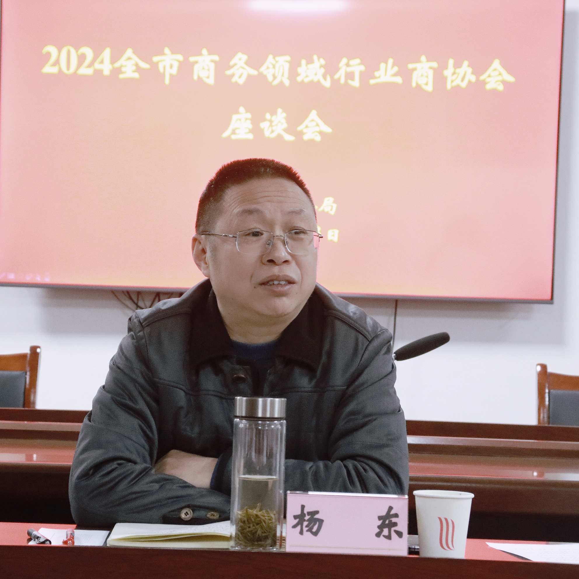 杨东向各商(协)会简要通报了2023年商务经济运行情况。他表示,商务领域各商(协)会代表着本行业全体企业的共同利益,是政府与企业之间联系的桥梁和纽带,在全市商务经济发展中发挥着重要作用。2024年,希望各行业商(协)会继续发挥积极作用,做好以下工作:一是充分发挥行业商(协)会桥梁纽带作用,运用好商(协)会优势,及时反应市场行情,准确进行趋势预测,科学提供决策依据,推动行业健康发展。二是充分发挥协会行业自律发展作用,通过行业与行业间集团成链,探索建立行业公平经营标准,促进人才培养及合理流动,推进企业良性发展。三是充分发挥协会服务企业促进发展的作用,创新发展行业服务品牌建设,支持会员单位建立合法维权机制,形成良好经营环境。