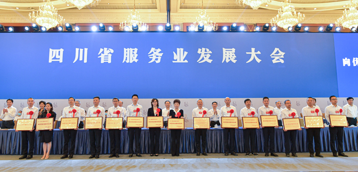 9时30分许,随着播放四川服务业发展专题片《勇立潮头开新篇》,大会正式拉开帷幕。省委常委、副省长罗文宣读有关表彰表扬的决定和通报。在热烈的掌声中,彭清华、柯尊平、王炳南、邓小刚等向受表彰优秀服务业企业代表授牌。中国物流与采购联合会、成都市、完美世界控股集团公司、四川新派餐饮管理公司负责人作交流发言。