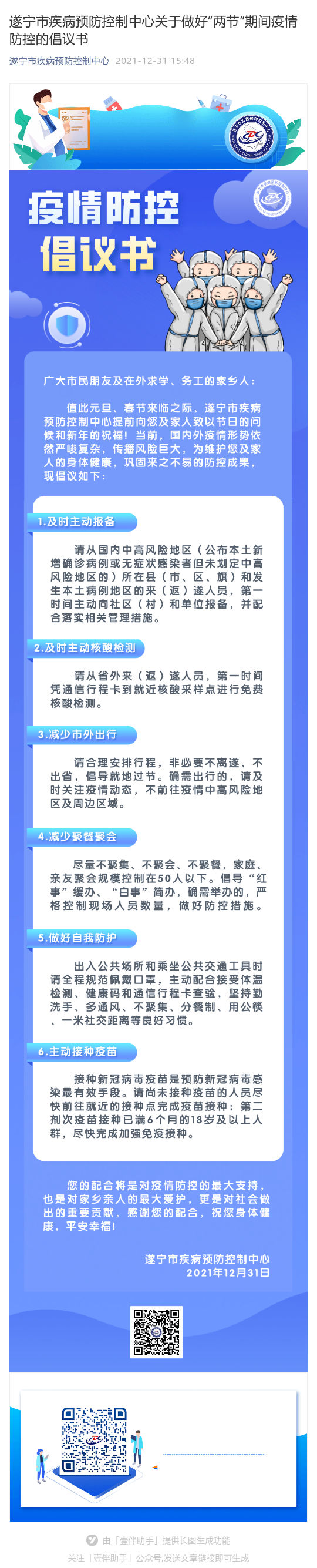遂宁市疾病预防控制中心关于做好“两节”期间疫情防控的倡议书