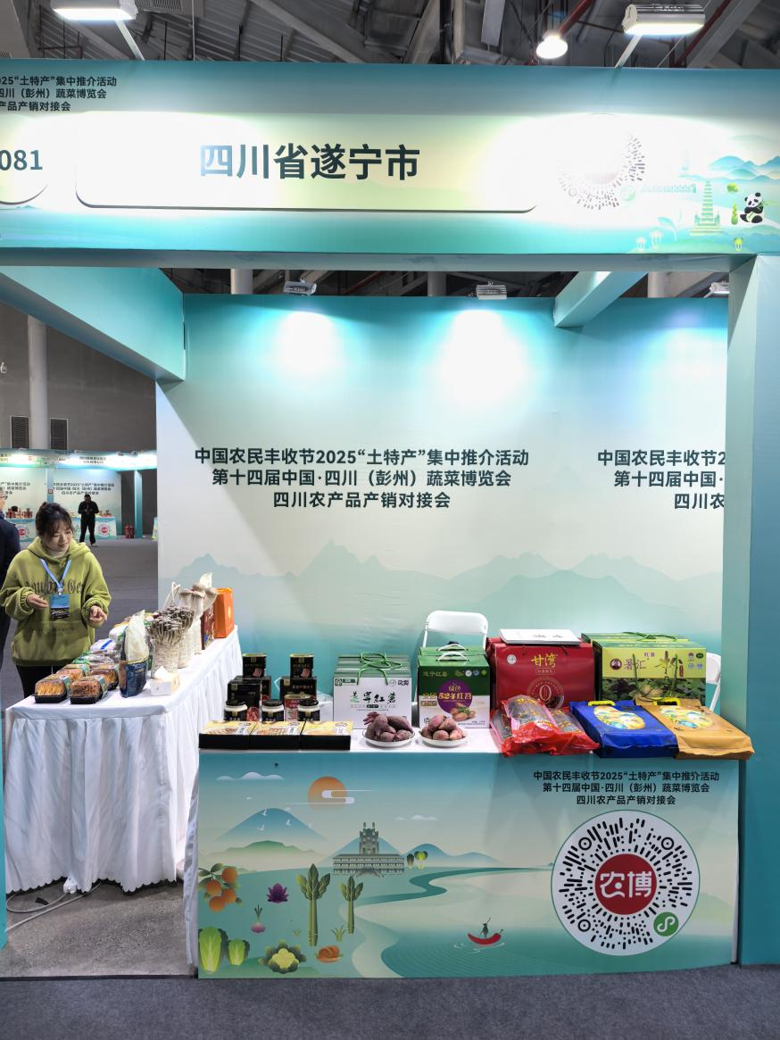 为进一步提升“遂宁鲜”农产品区域公用品牌知名度与影响力,11月29日,遂宁市农业农村局携“遂宁鲜”系列农产品亮相中国农民丰收节2025“土特产”集中推介活动暨第十四届中国·四川(彭州)蔬菜博览会,以遂宁优质“土特产”身份参与全国农业品牌盛会。