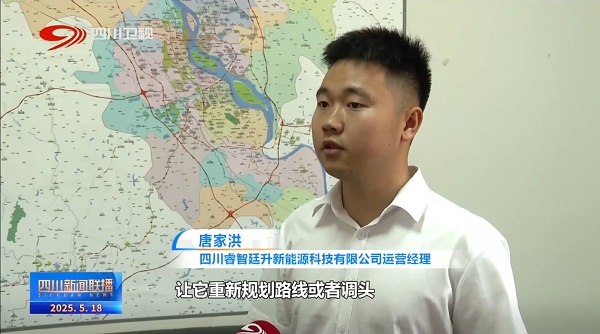 四川睿智廷升新能源科技有限公司运营经理唐家洪:遇到某些突发情况,它就会预警(报警),我们后台就会监管,让它重新规划路线或者调头,这个系统我们是24小时有专人监测的,可以进行远程操控。
