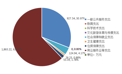 2023年度一般公共预算财政拨款支出2995.28万元,主要用于以下方面:一般公共服务支出927.54万元,占30.97%;教育支出0万元,占0%;科学技术支出0万元,占0%;文化旅游体育与传媒支出0万元,占0%;社会保障和就业支出124.94万元,占4.17%;卫生健康支出26.23万元,占0.88%;住房保障支出53.34万元,占1.78%;商业服务业等支出1,863.22万元,占62.21%。