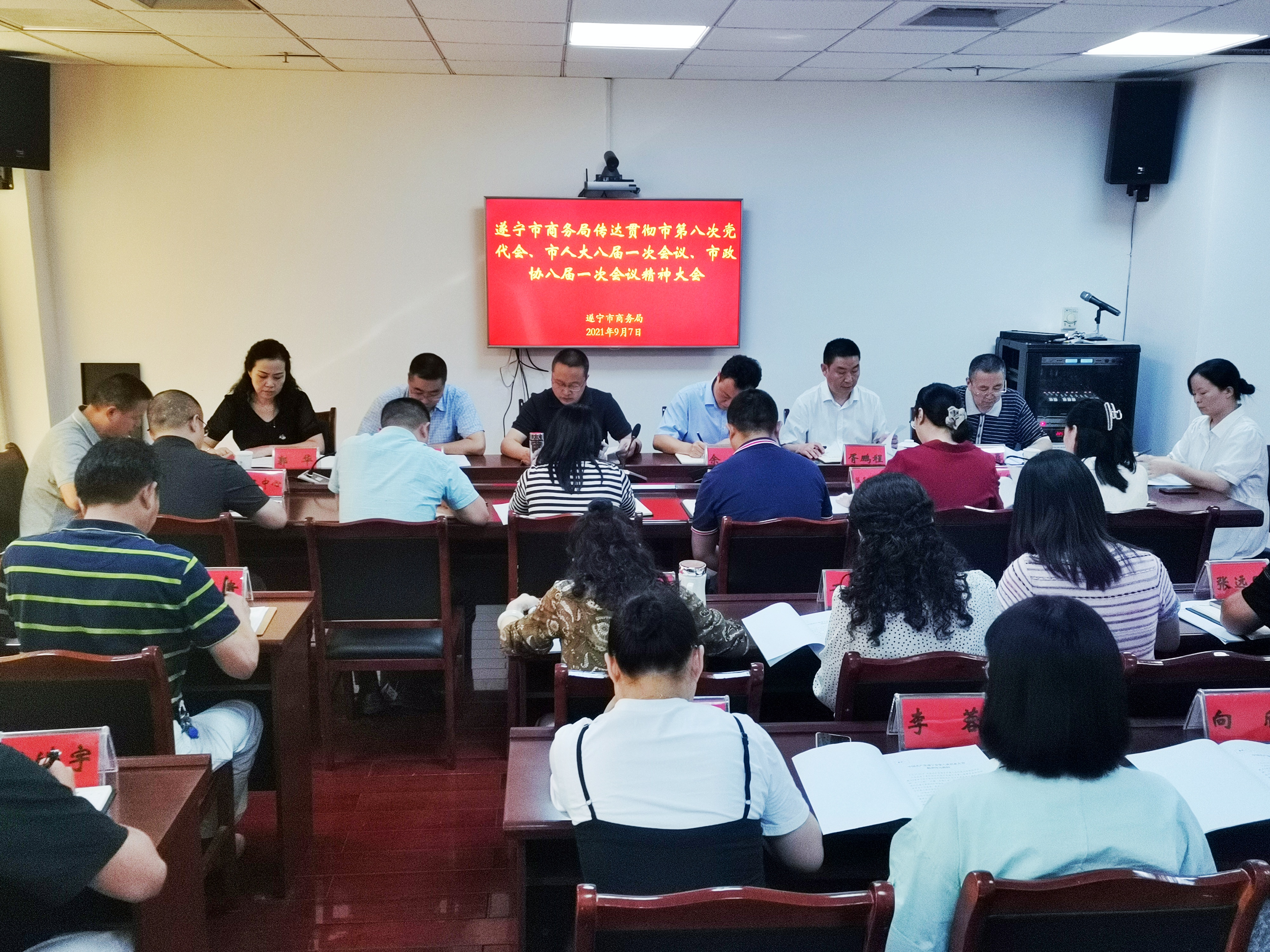 9月7日,市商务局召开会议,专题传达贯彻市第八次党代会、市八届人大一次会议、市政协八届一次会议精神,研究贯彻落实意见,全面推动党代会精神落地见效。党组书记白争春主持会议,全局干部职工参加会议。