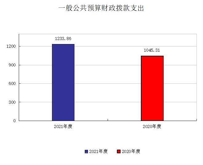 2021年一般公共预算财政拨款支出1233.86万元,占本年支出合计的97.49%。与2020年相比,一般公共预算财政