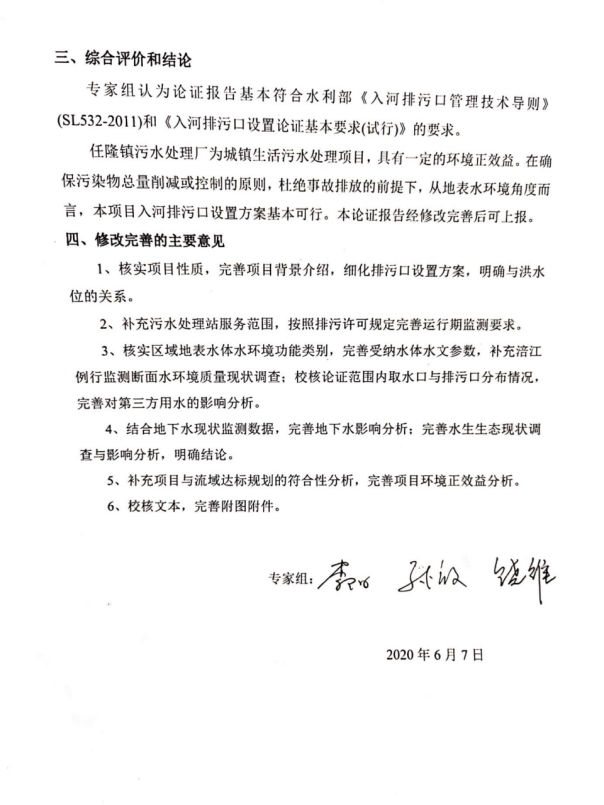 7.《遂宁市城镇污水处理设施全市统一打包建设运营PPP项目(任隆镇污水处理厂)入河排污口设置论证报告》专家评审意见