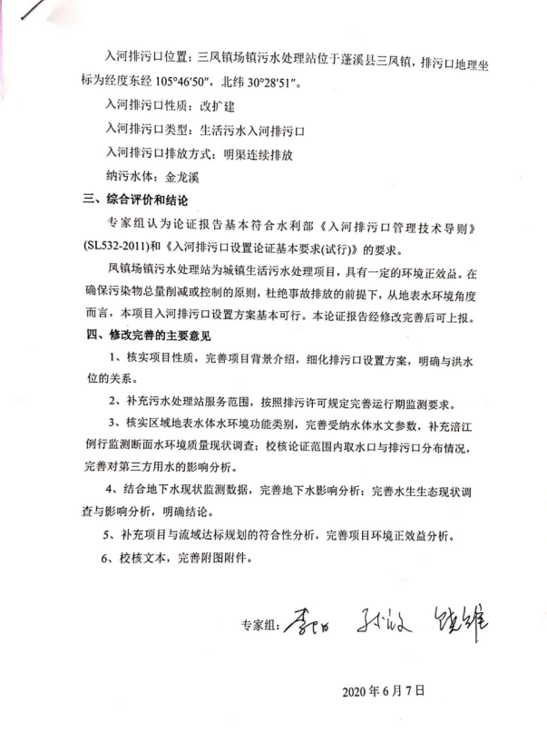 4.《遂宁市城镇污水处理设施全市统一打包建设运营PPP项目(三凤场镇污水处理站)入河排污口设置论证报告》专家评审意见