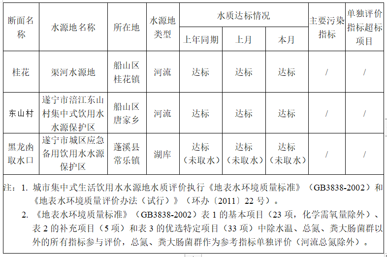 本月遂宁市城区集中式生活饮用水水源地水质情况见表3。