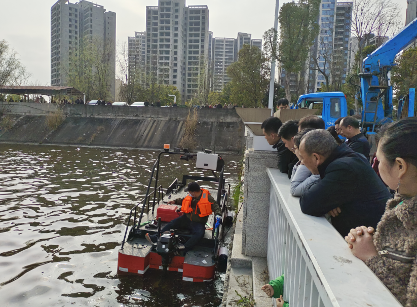 一线环境应急管理人员和环境应急救援队伍,对新采购的无人吸油船、吸油泵、围油栏等环境应急物资开展现场操作培训。