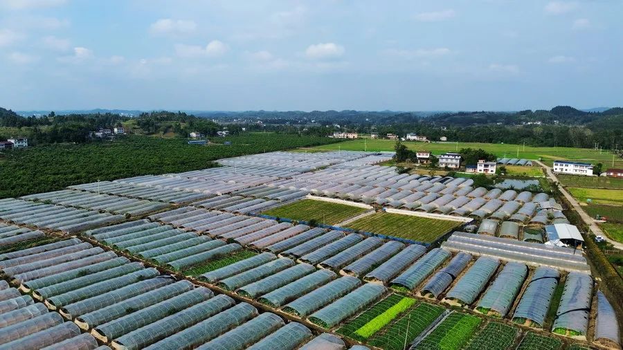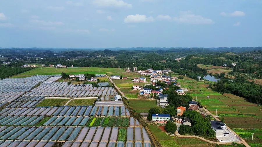 11月2日,记者用无人机拍摄遂宁市安居区三家镇明星村,远远望去,一派生态美、产业兴、百姓富的田园风光。