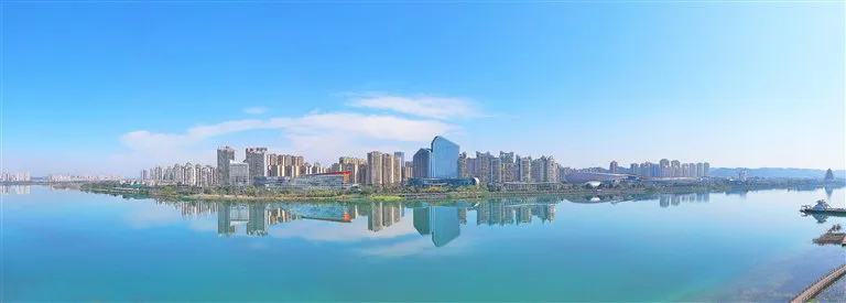涪江流域生态持续向好,遂宁城区观音湖水质清澈。