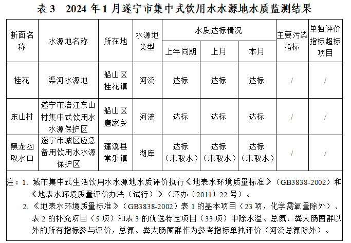 本月遂宁市城区集中式生活饮用水水源地水质情况见表3。