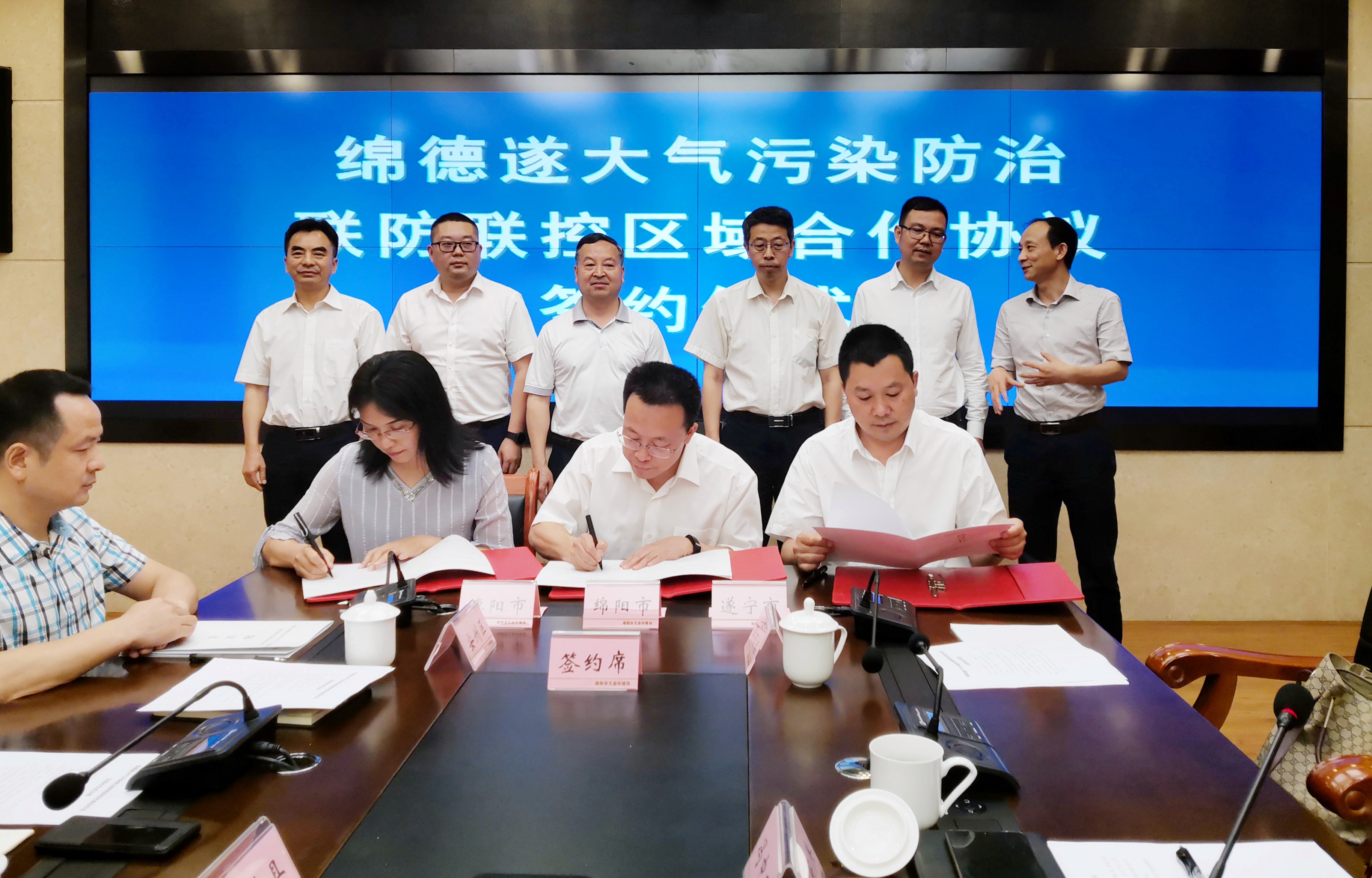 为认真贯彻落实国、省大气污染防治联防联控工作要求,持续巩固大气环境质量,形成大气污染防治工作齐抓共管的良好局面,共同推进区域生态环境保护和经济社会协调发展。6月1日,绵阳、德阳、遂宁三市签订大气污染防治联防联控区域合作协议。签约仪式上,绵阳市人民政府副市长罗蒙致辞,生态环境厅总工程师赵乐晨出席并讲话。