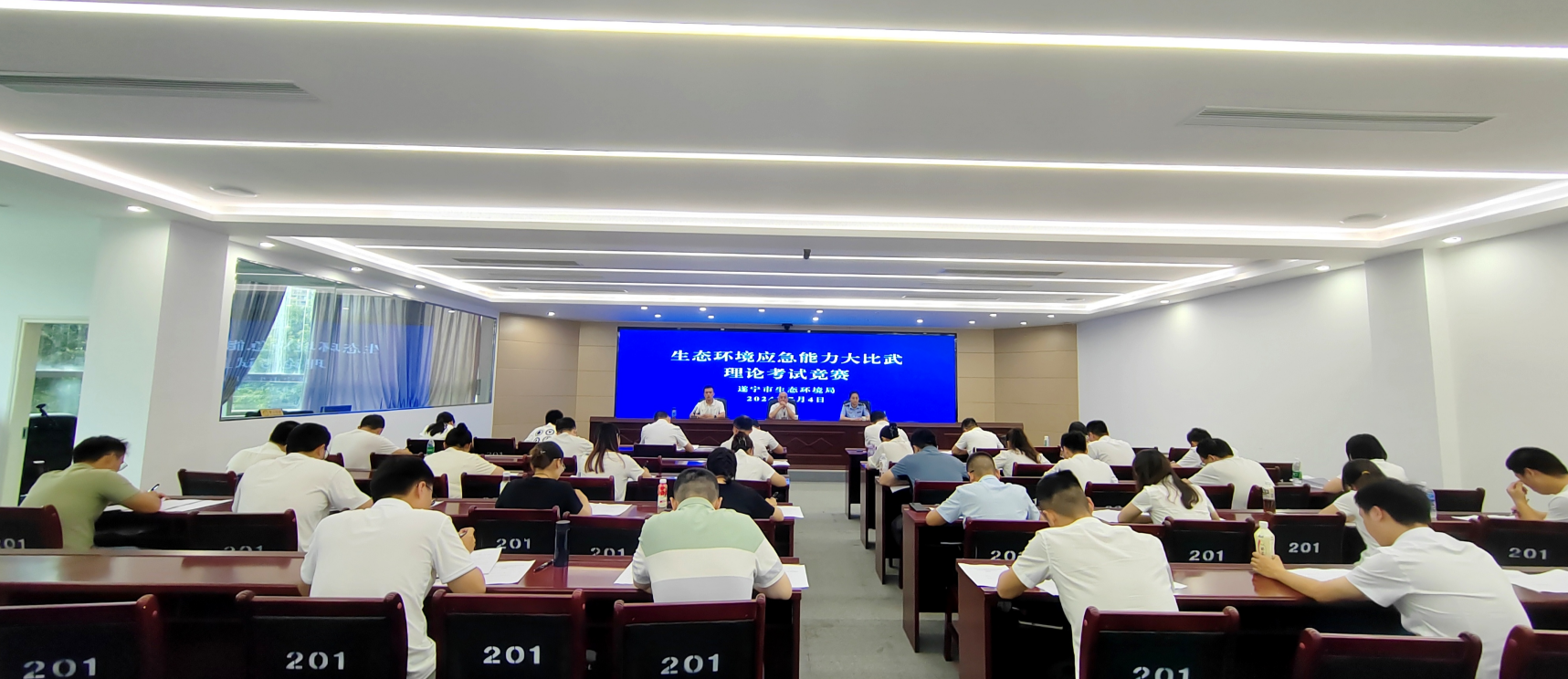 为全面提升全市生态环境系统环境应急管理和突发环境事件应急处置能力,7月4日,遂宁市生态环境局举办了2024年遂宁市环境应急业务综合大比武竞赛活动,全市6支代表队36名队员参与竞赛,局党组书记、局长淼霖同志出席活动并讲话,市生态环境局在家班子成员、市应急管理局有关负责同志、各派出机构主要负责同志、执法支队负责同志参与。通过理论基础知识测试、“一河一策一图”方案讲解、典型突发事件桌面推演,展示了前期生态环境系统环境应急和实战能力提升的演训成果。