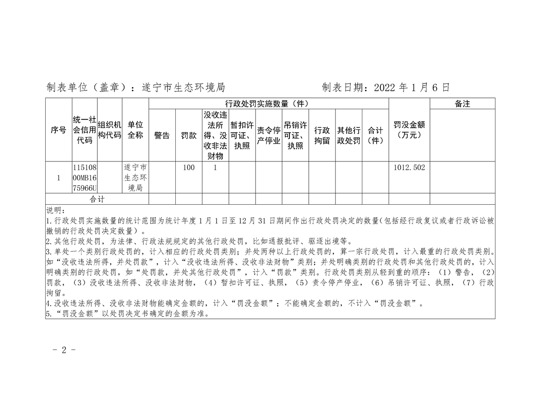 遂宁市生态环境局2021年度行政执法和行政执法监督情况公示