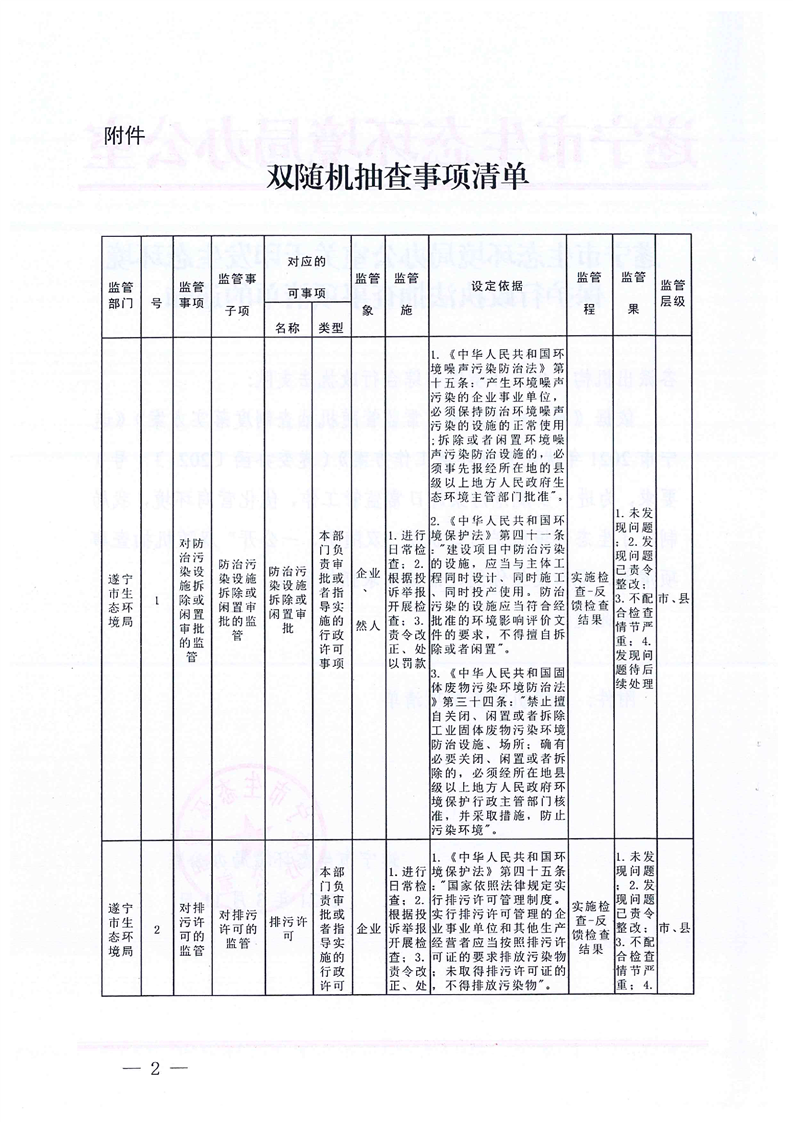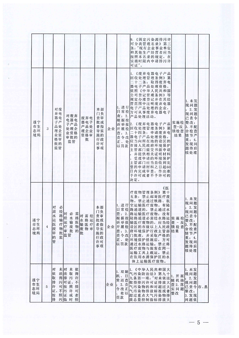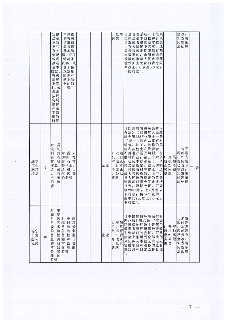 遂宁市生态环境局办公室关于印发生态环境保护行政执法抽查事项清单的通知