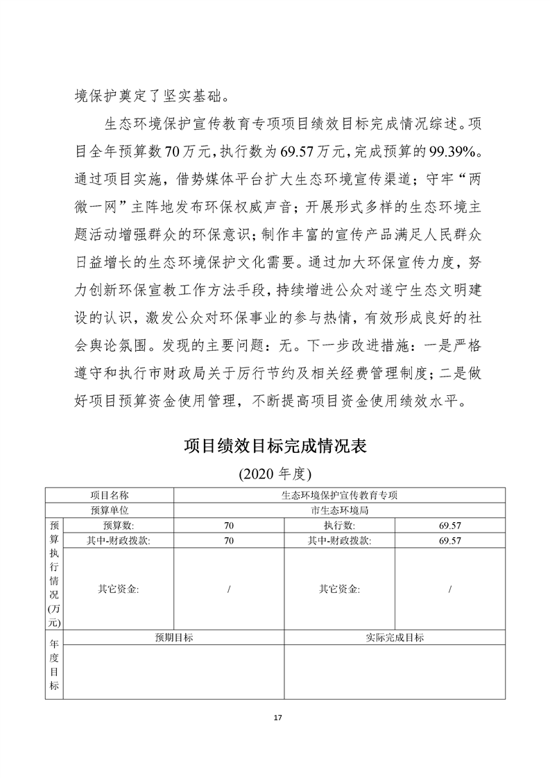 2020年度遂宁市生态环境宣传教育信息中心部门决算