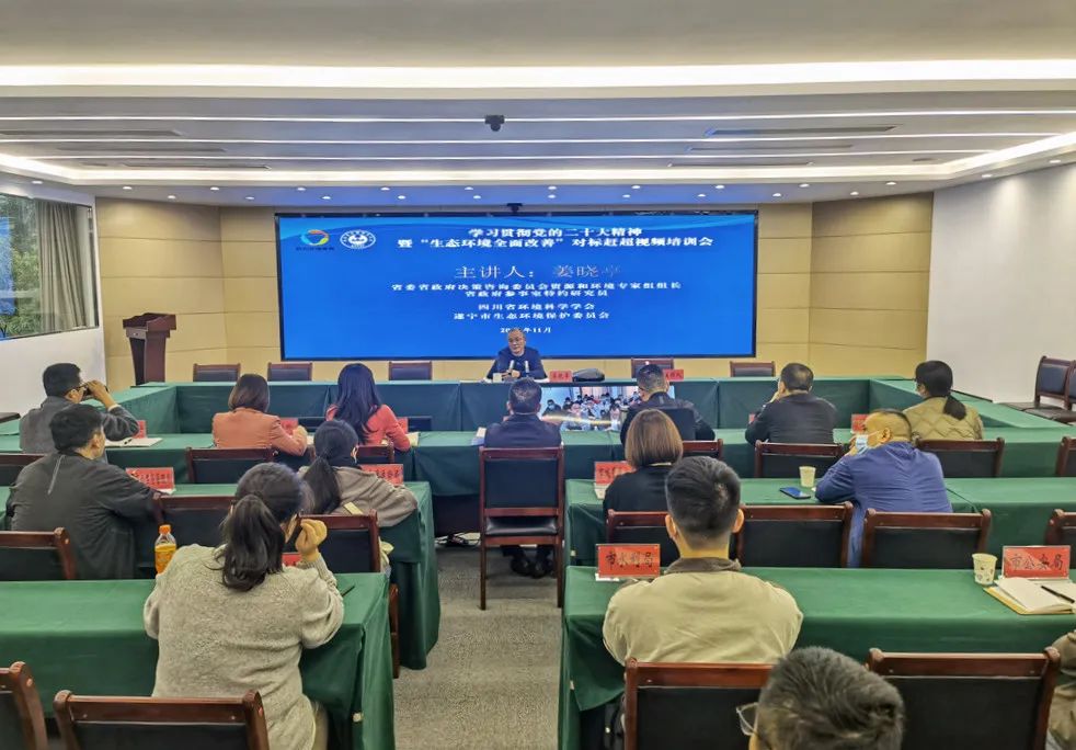 为进一步全面学习宣传贯彻党的二十大精神,坚定不移践行习近平生态文明思想,切实加强全市各级各部门对生态文明建设和生态环境保护工作的认识,11月7日,遂宁市召开学习贯彻党的二十大精神暨“生态环境全面改善”对标赶超视频培训会。省委省政府决策咨询委员会资源和环境专家组组长、四川省科协副主席、省政府参事室特约研究员姜晓亭出席会议并授课,市政府副秘书长胡建军主持会议。