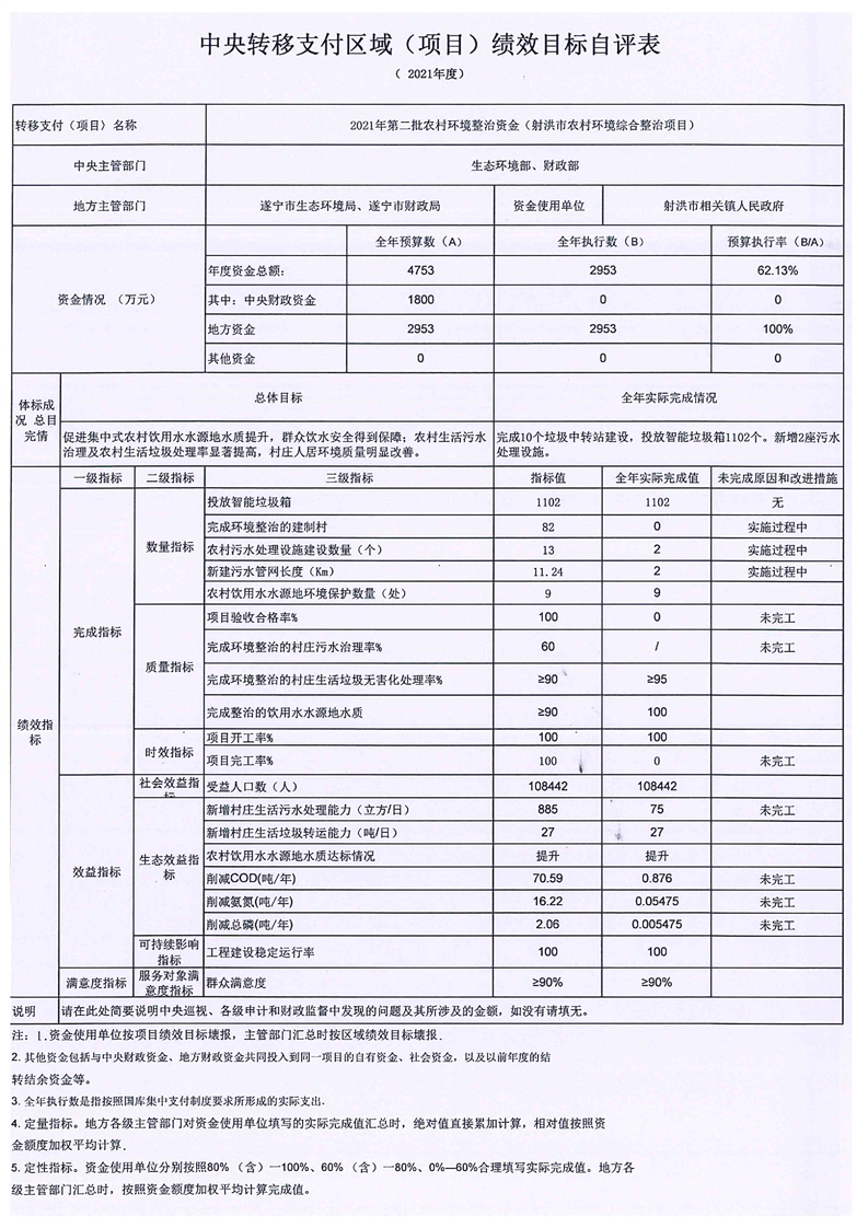 中央转移支付区域(项目)绩效目标自评表-2021年中央农村环境整治资金