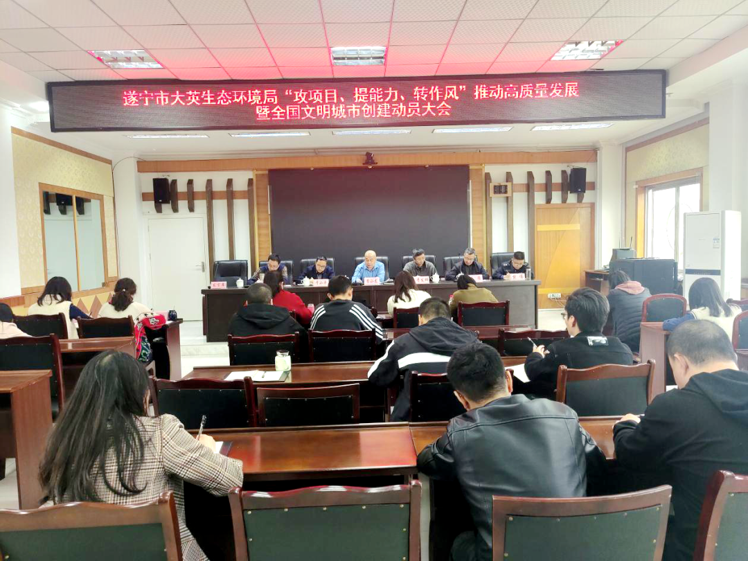 3月9日下午,大英生态环境局召开“攻项目 提能力 转作风”推动高质量发展暨全国文明城市创建动员大会,对“能力作风提升年”“项目投资攻坚年”“全国文明城市创建”活动进行动员部署。